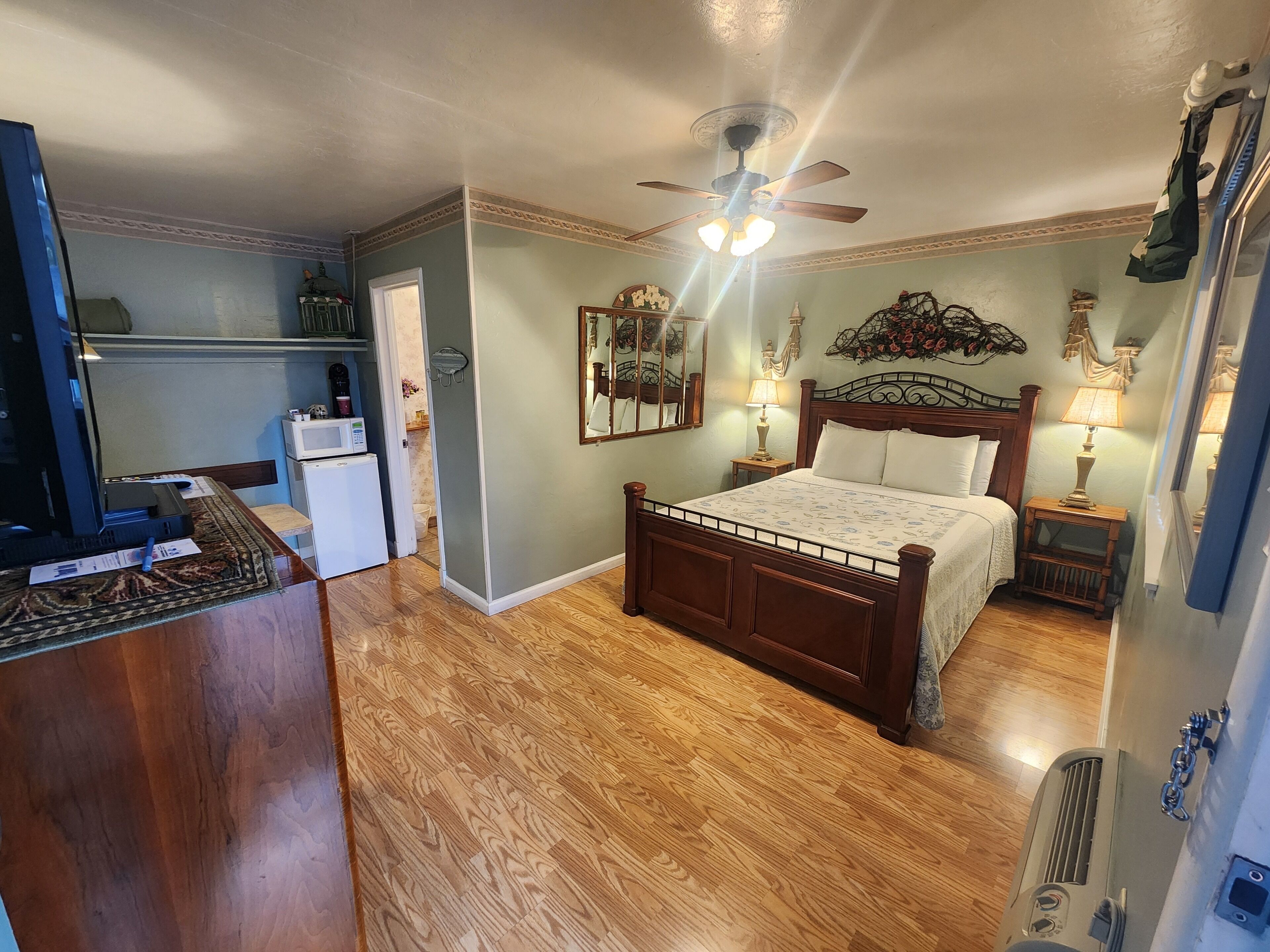 - "Great spot! Close to restaurants, affordable, clean and felt safe! Would stay here again." - "My husband and I enjoyed our stay very much. The unit was well- stocked, clean and reasonably priced. The staff polite and attentive. They went way out of their way to make sure our stay was pleasant. This was our 2nd summer at their properties. We highly recommend it." - "Nice little one room cabin. Looks clean and new. Has a full sized washer and dryer, but no laundry detergent. They did say there was cloths for washing dishes, but none were in the cabinet."