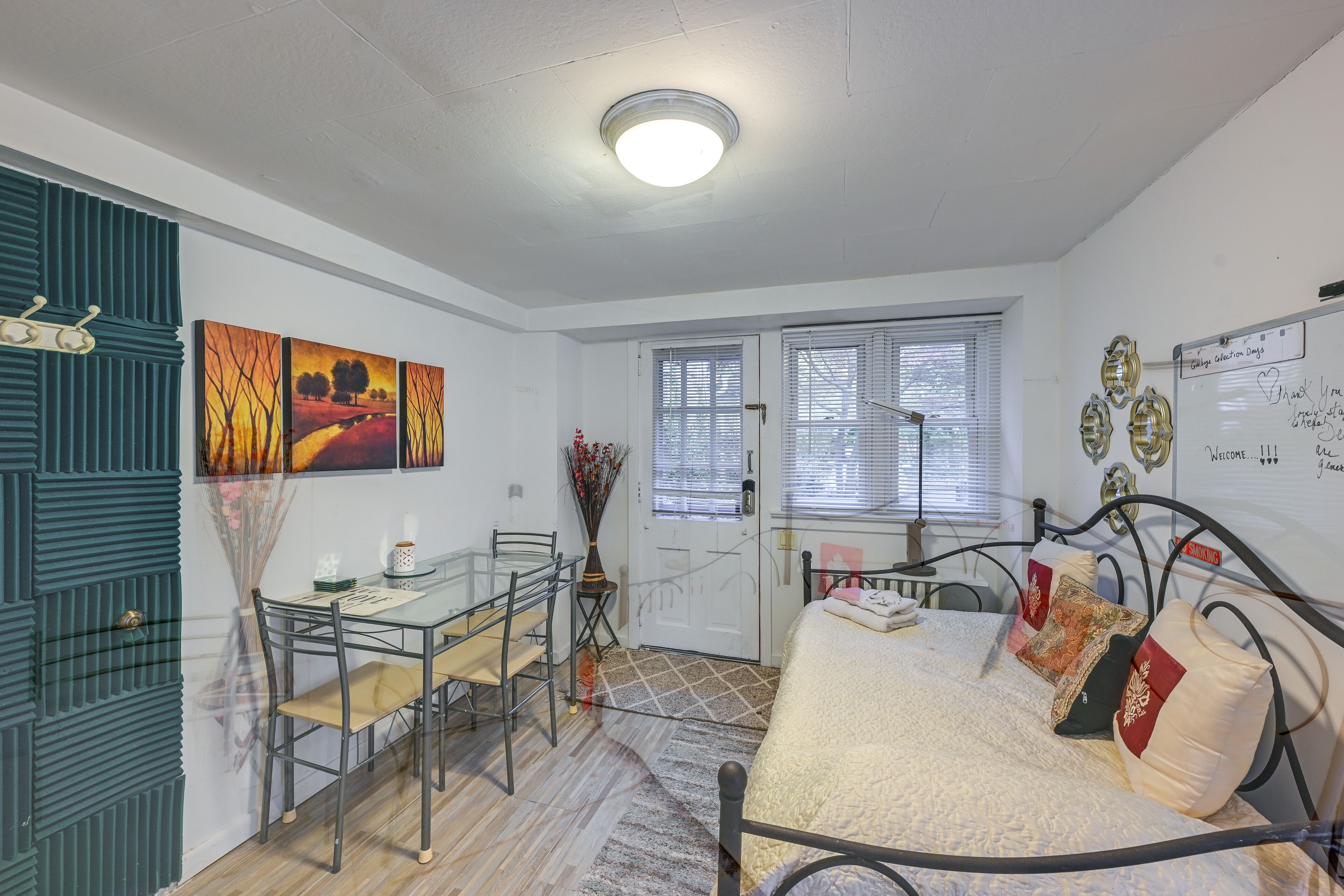 Bedroom: Queen Bed | Living Room: Twin Daybed w/ Twin Trundle
