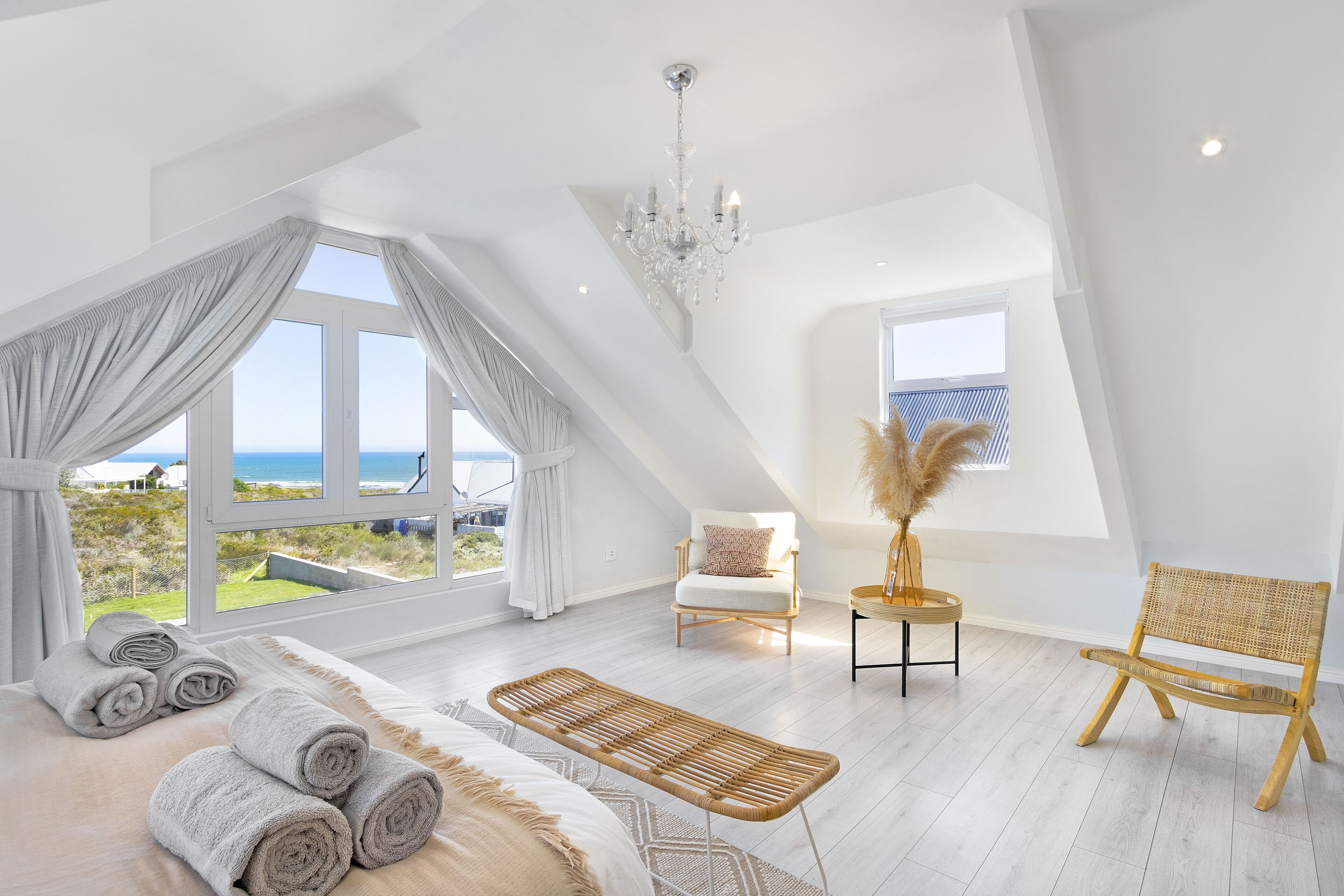 This exquisite 4-bedroom house is situated in Grotto Bay along Cape Town’s West Coast within a private nature reserve. The remote estate provides 24-hour security with cameras throughout the estate to ensure you and your family’s safety during your stay. Although this is a remote estate you are within walking distance to a private beach as well as many walking paths within the reserve where you can keep an eye out for Rooi Duiker Bokkie, tortoises, ostriches or enjoy the abundance of wildflowers and natural fynbos. Neighboring towns would be Melkbos, Yserfontein and Darling, all are about 30km away, and you will find everything you need as there are no shops in Grotto Bay.