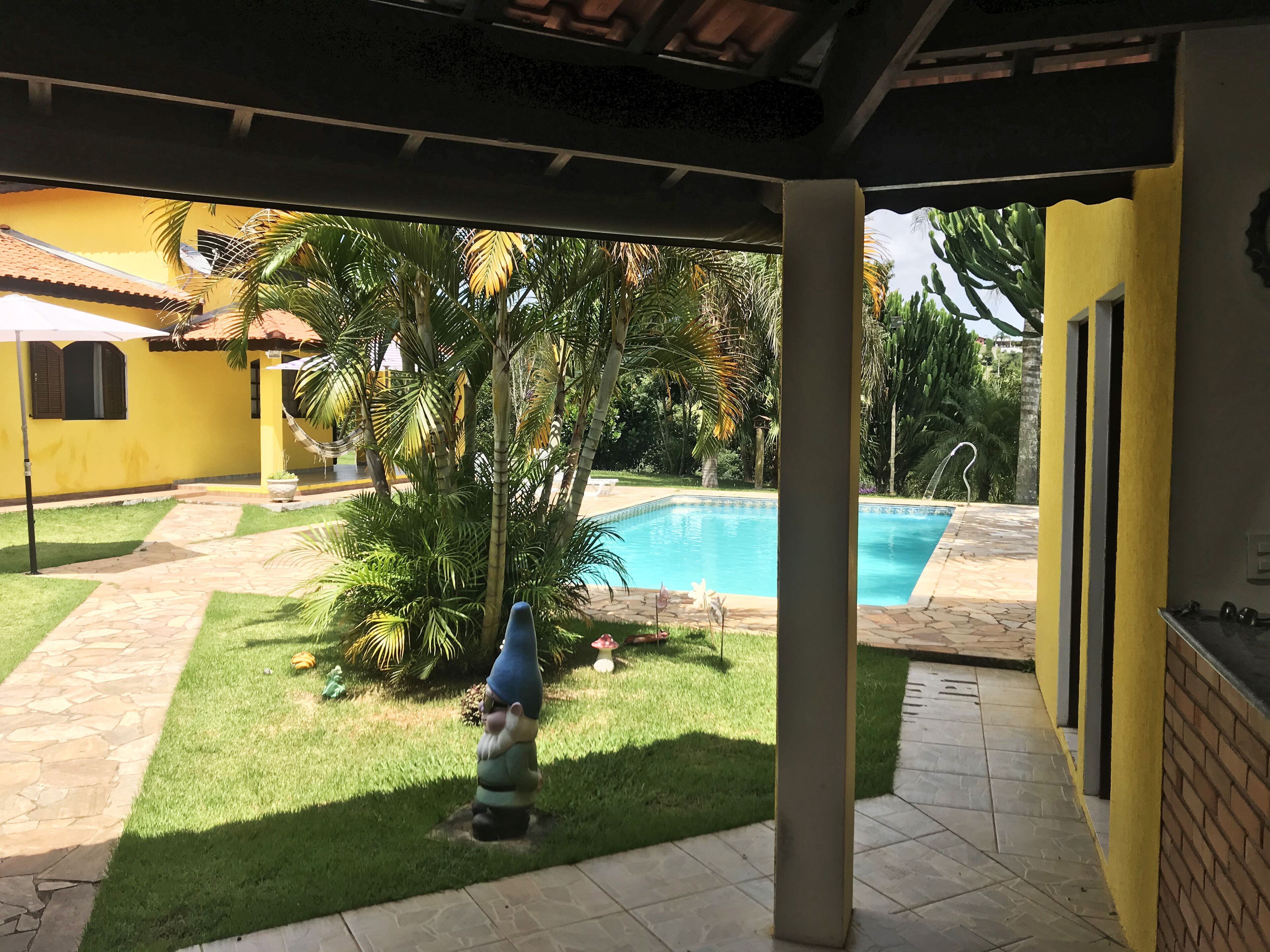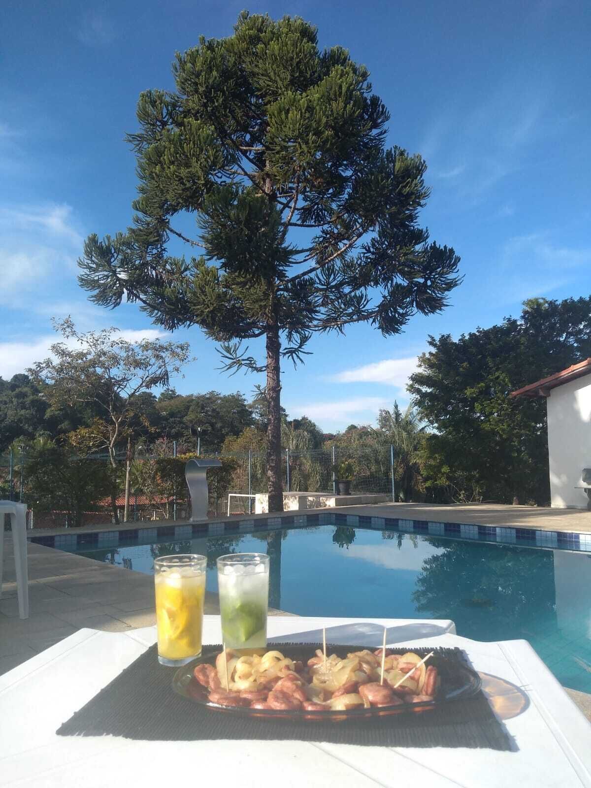 R $ 550,00 per day Saturdays and Sundays (Less Extended Holidays, other values)) With WiFi. Beautiful country house 40 minutes from SP. (3 beautiful independent suites for total privacy, Value For up to 15 people a lot of cleanliness, enjoy the tranquility of the countryside with lots of fresh air and lots of fun, adult pool with volleyball net, waterfall and hydro + children's pool, Children's Swing, All flat in the house and area around the pool.Ideal for the elderly, children and wheelchair users.Ramp access for wheelchair users. Watts 11 941994121 receive video from local A lot of green area, and in the back small forest, panoramic view of the sunset, TV 42 ..all this for the meetings and vacations of your family. Comfort of 01 to 15 people. All in comfortable beds. Family only. We have tb game room official Snooker table, Foosball, Pool Volleyball Net. Soccer court grassy and We do not accept dogs of large and medium size ... just small. We do not rent to groups that enjoy SOM too loudly.