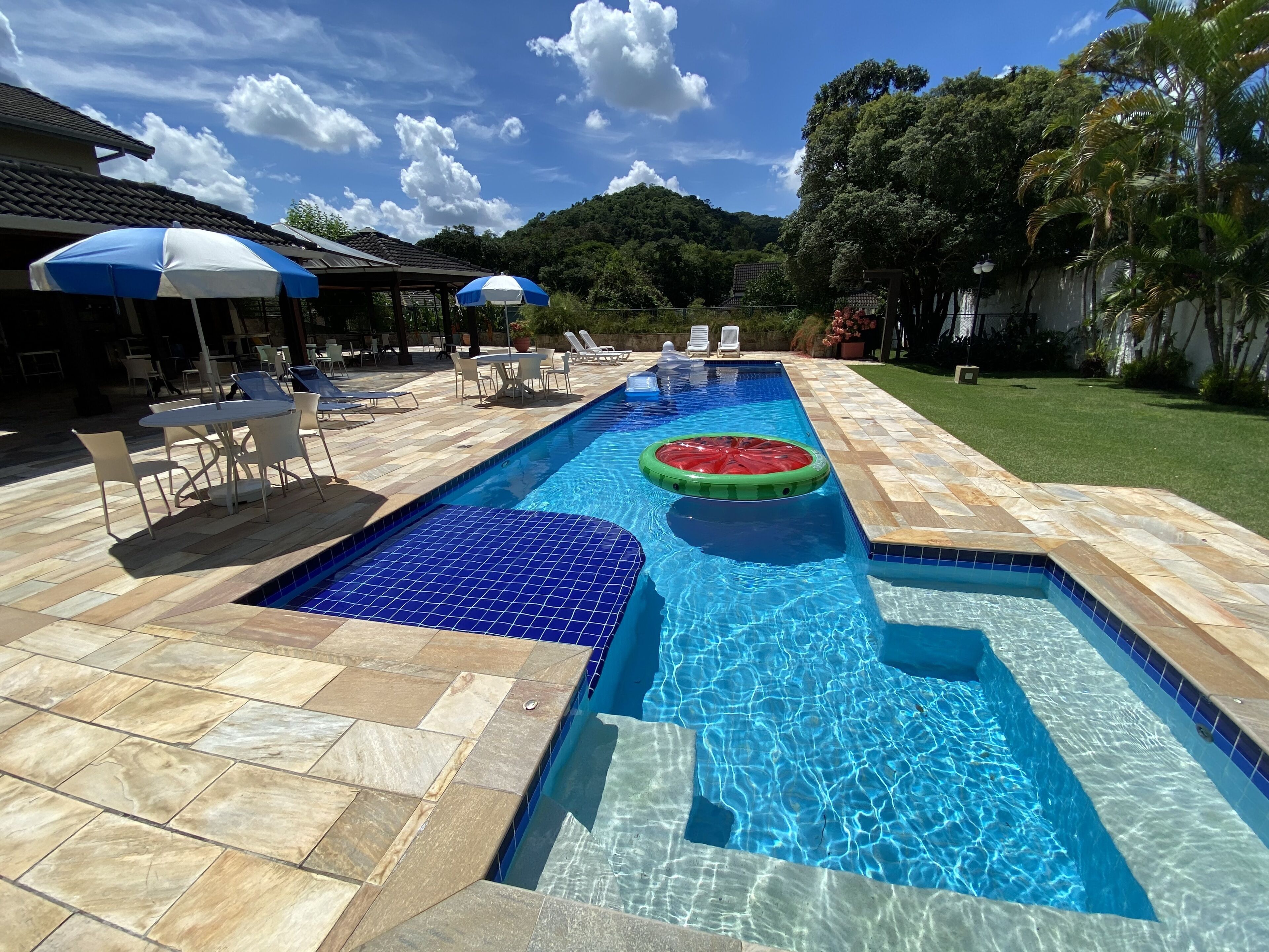 25 miles from Adamastor Pimentas Theatre in Guararema, Piscina, jardim, área gourmet e vista arborizada offers accommodations with access to a solarium. This property offers a private pool, free Wifi, and free private parking. The vacation home features a children's playground and a 24-hour front desk. Offering direct access to a balcony with pool views, the spacious vacation home consists of 6 bedrooms. Featuring a terrace with mountain views, this vacation home also includes a cable flat-screen TV, a well-equipped kitchen with an oven, a microwave, and a toaster, as well as 5 bathrooms with a shower and free toiletries. There's also a seating area and a fireplace. Guests can also relax in the garden or in the shared lounge area. Chico Mendes Park is 28 miles from the vacation home. São José dos Campos Airport is 24 miles from the property.