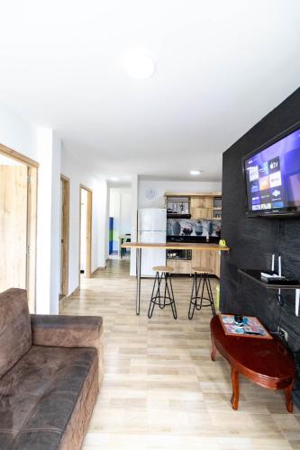 Offering mountain views, Roble Colonial - Apartamentos Deluxe en Guatapé in Guatapé offers accommodations and a garden. The apartment, housed in a building dating back to 2020, is 3.2 miles from Piedra del Peñol. Featuring a private entrance, the apartment allows guests their privacy. All units include a seating area, a flat-screen TV, a fully equipped kitchen, a dining area, and a private bathroom, while some feature a terrace or a balcony. Free Wifi is available to all guests, while selected rooms here will provide you with a patio. At the apartment complex, the units come with bed linen and towels. Sightseeing tours are available in the surrounding area. José María Córdova International Airport is 28 miles away.
