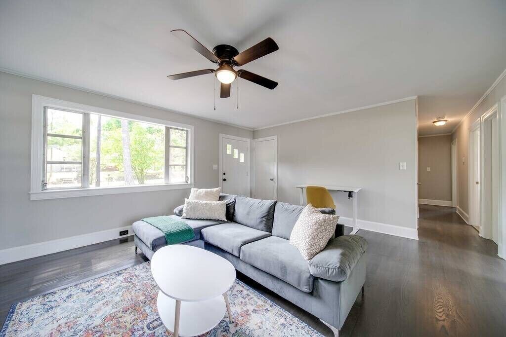 Outdoor Oasis: Step outside into the large, private backyard where you'll find a cozy fire pit, perfect for evening conversations or roasting marshmallows. The peaceful cul-de-sac setting ensures a quiet, relaxing environment, making it the perfect place to unwind after a day exploring Charlotte.