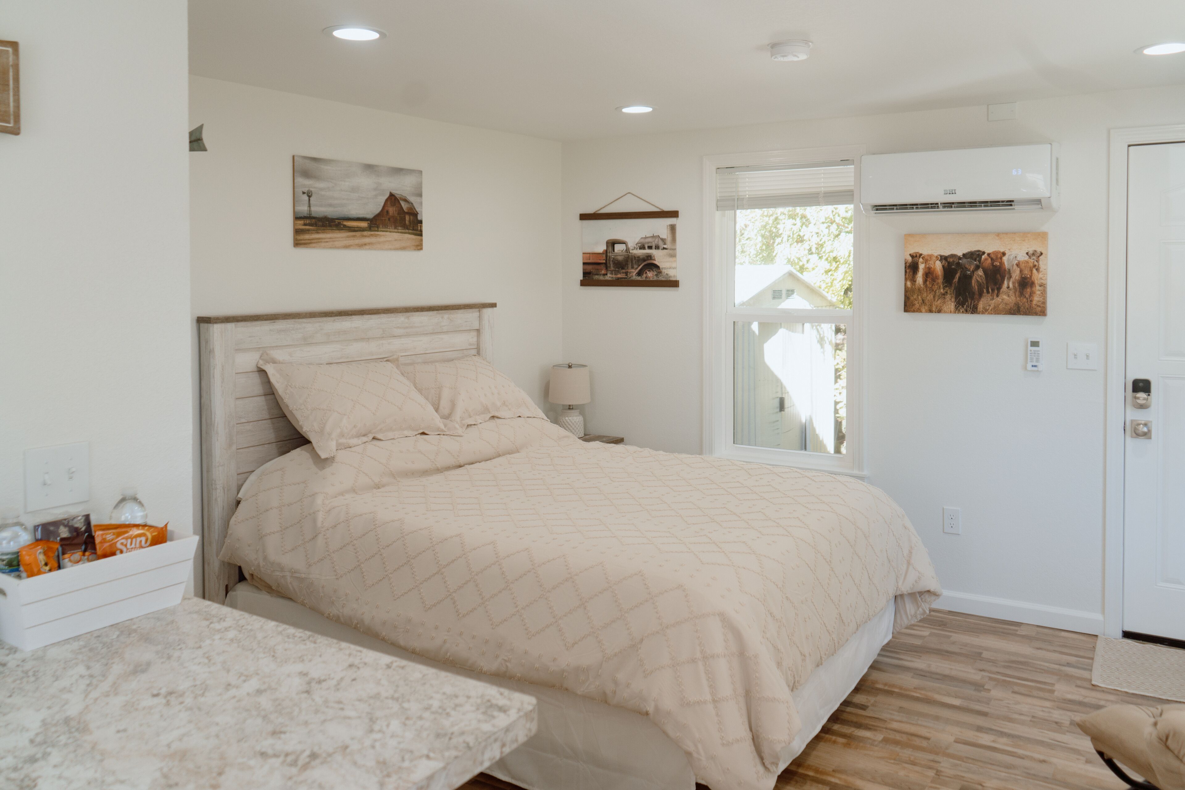 You'll feel right at home in this "Simply Suite" and peaceful private home. This freshly remodeled cottage has all the modern amenities, including a smart lock for self check-in and a Roku TV set up so you can log into your favorite streaming apps. A queen-sized bed and comfy chair adds to its homey feel. and the fully equipped kitchen provides everything you need for a dine-in meal or a quick breakfast. Outside amenities include off-street parking and a cozy little dining area among the trees.