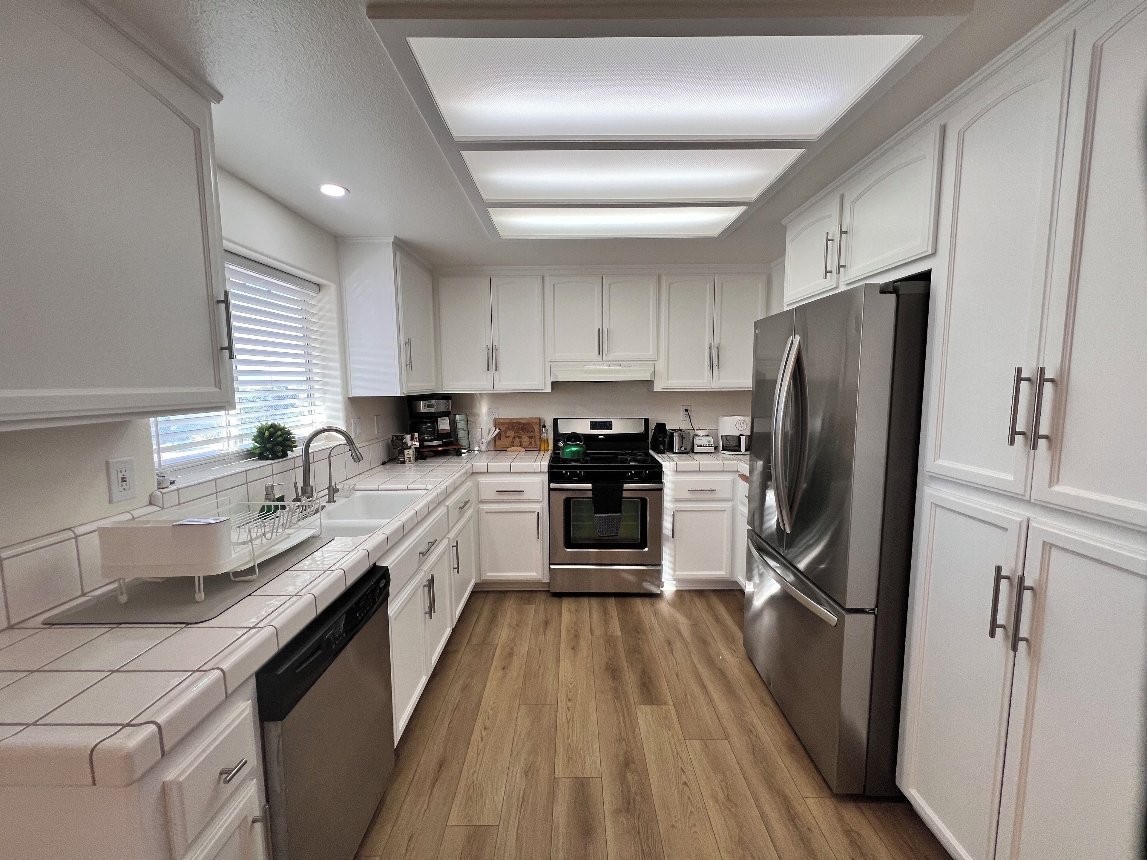 KITCHEN: Stove/oven, refrigerator, dishwasher, dual single-serve/drip coffee maker, microwave, cooking basics, trash bags/paper towels