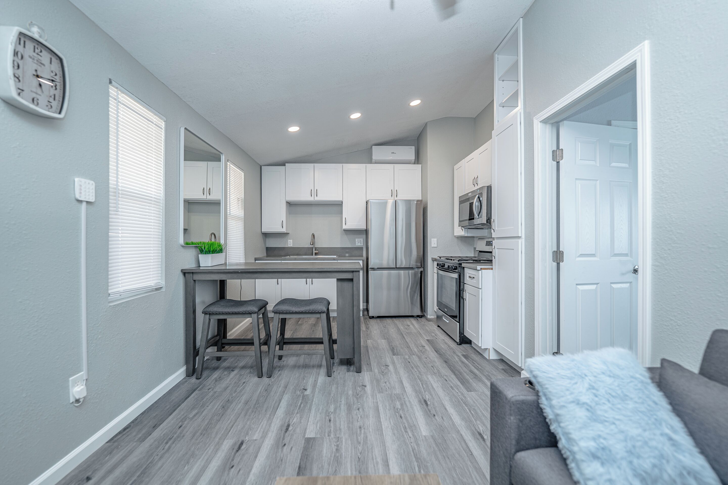 BRAND NEW LUXURIOUS CABIN!! This cabin will provide you luxurious hotel suite experience. Gorgeous 1 bedroom, 1 full bathroom, living room and a modern kitchen!! High Vaulted Ceiling throughout. Fully furnished with all brand new furniture, beddings, linens & supply. Fully Loaded Modern kitchen has brand new Whirlpool brand appliances, expensive quartz counters, deep sink & faucet. The bedroom has a queen size bed that can sleep 2 person, & living room has a pullout sofa for a 3rd guest. A larger smart TV in living room & smaller TV in bedroom! Covered patio with garden and outdoor seating!! Free Washer & Dryer available for guests.
