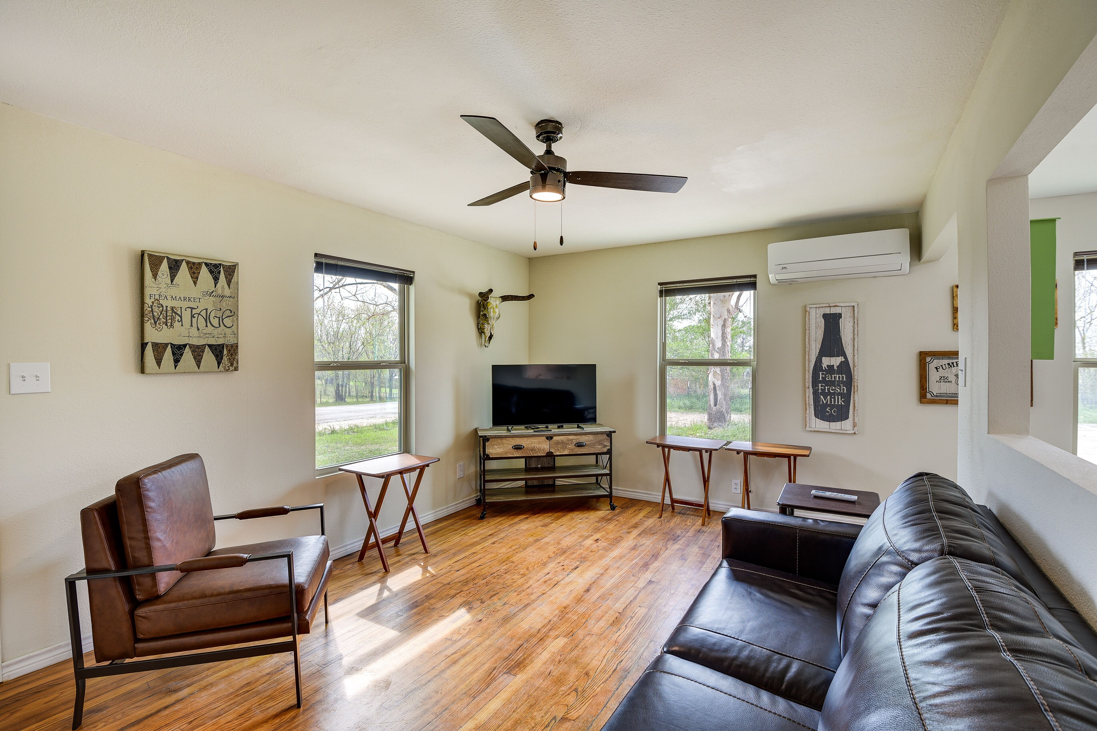 Step into a world of timeless elegance and cozy comfort in this historic 1884 cottage nestled in the heart of Hico. With its original hardwood floors, inviting ambiance, and large backyard perfect for fireside evenings, this home exudes a sense of history and character. Just a 6-minute stroll from downtown, you can enjoy both the serene outdoor retreat and the vibrant town center. Inside, you'll find spacious rooms each featuring a king bed, a primary bedroom with a luxurious double-headed walk-in shower, a large dressing room, and a guest bathroom boasting an original clawfoot tub.
