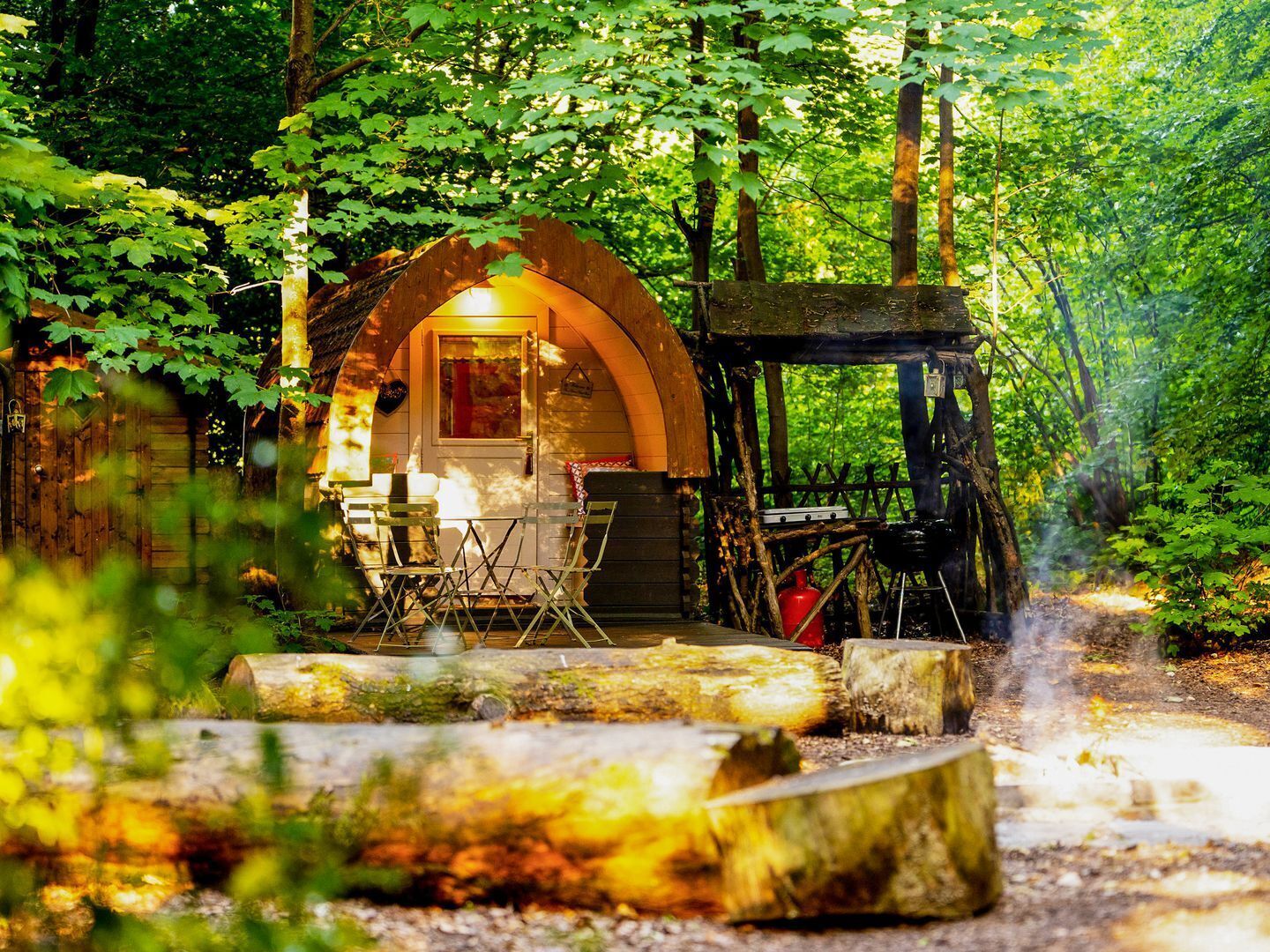 - "Great little place! The pod was comfortable, and we loved cooking outside, The hot shower was a lovely bonus after a day of exploring," - "A peaceful woodland retreat! The pod was comfortable and well-thought-out, We loved having a private toilet and enjoyed grilling delicious meals,"