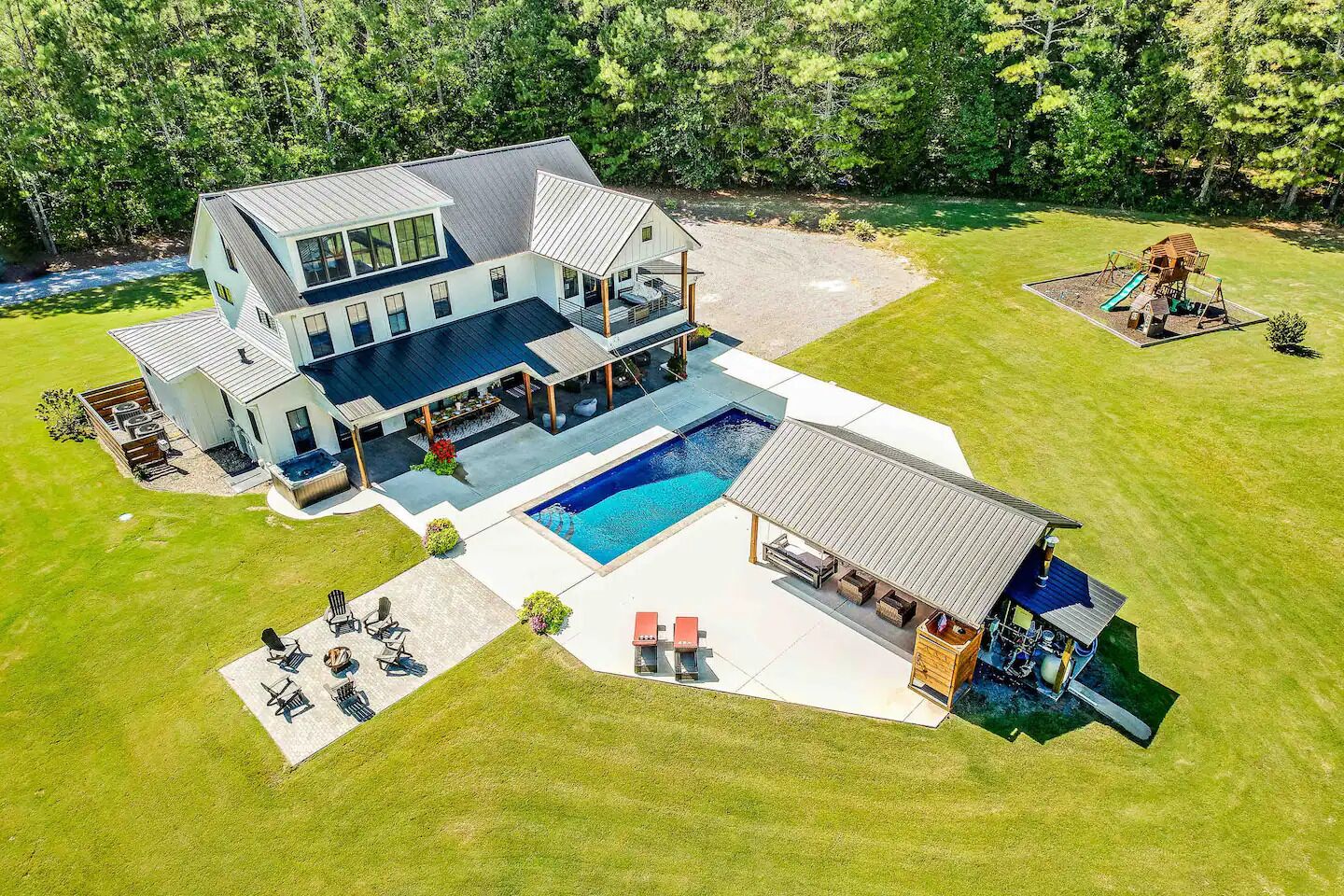 Picturesque views, large pool, hot tub, games, outdoor kitchen, bed swings and 2000sqft of covered porches make this the ideal getaway for your group.