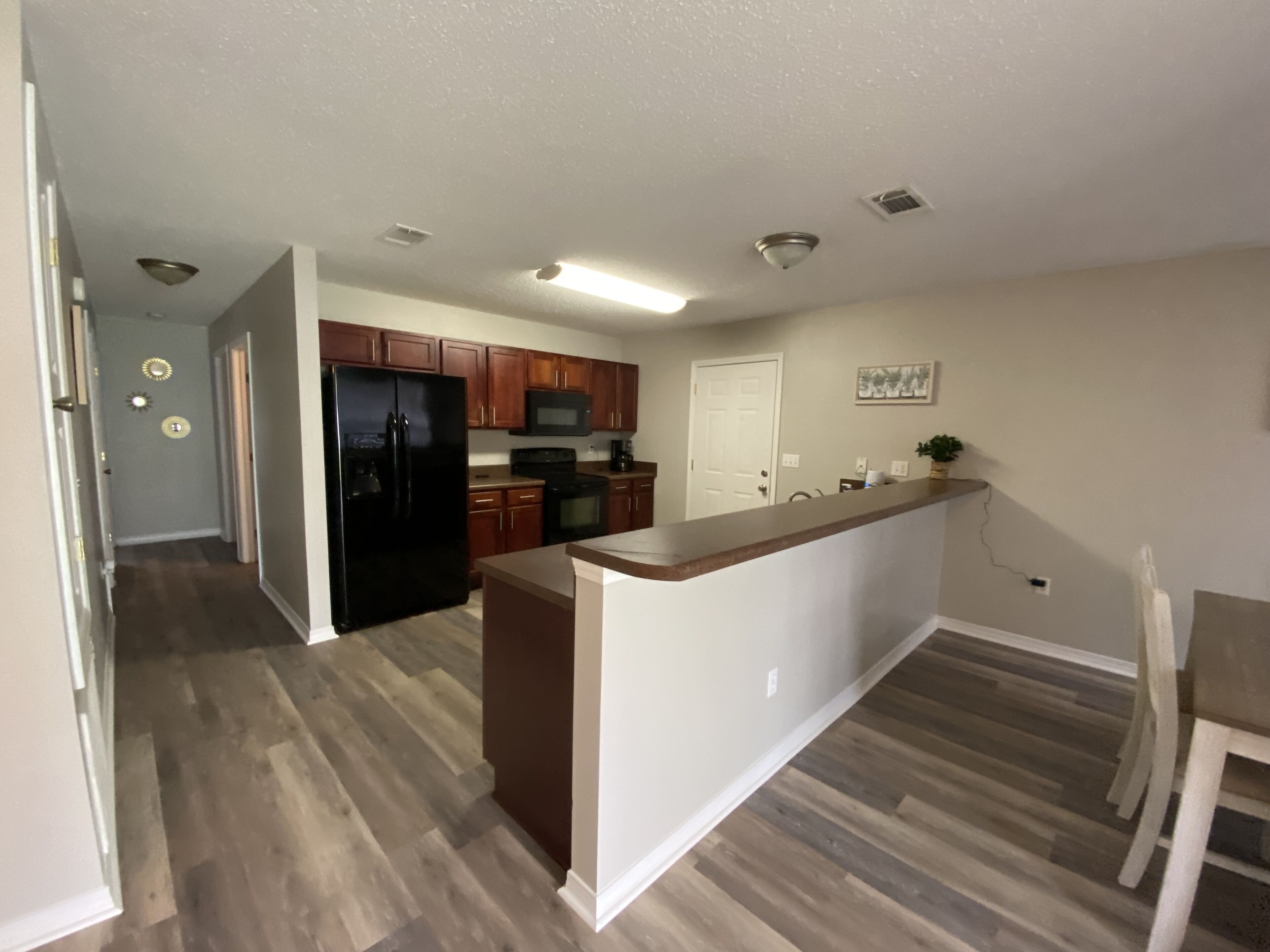 This fully furnished home has three bedrooms. The master has a queen bed and other two rooms have full beds. The master has its own private bath. A full hall bath and a one car garage with washer and dryer. Each bedroom has its own smart TV, closet, and extra storage. The kitchen is set up for your culinary needs, so you don’t have to eat out every day. Whether you need a weekly, monthly, or longer stay this home is a great option for your home away from home needs!