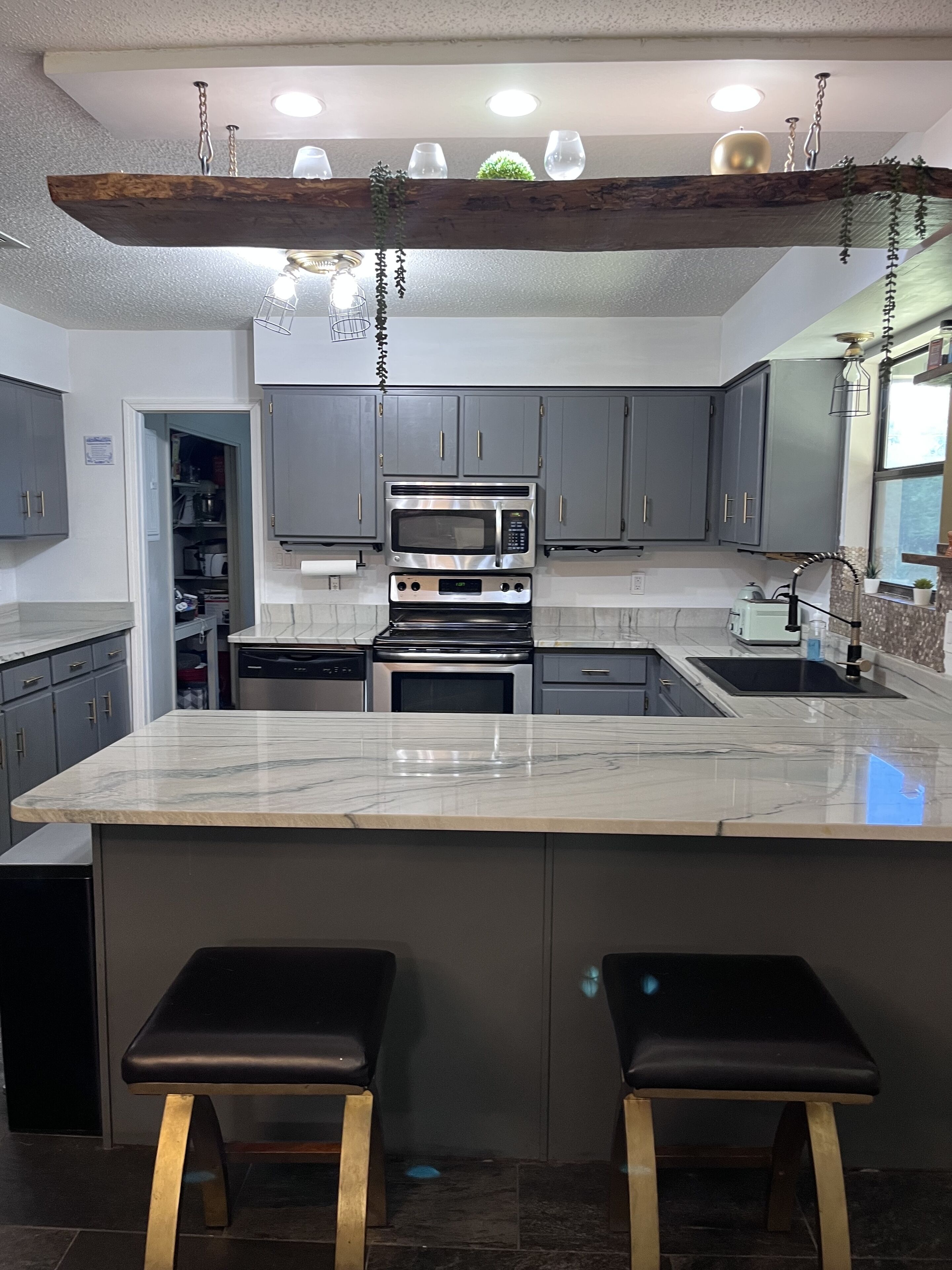 The modular sectional in the spacious living room is perfect for movie nights or letting the kids sprawl out. We provide smart TVs and/or with Roku (bring your own streaming logins), high-speed fiber optic Wi-Fi, and board games, Jenga, and giant Connect 4 for family fun.