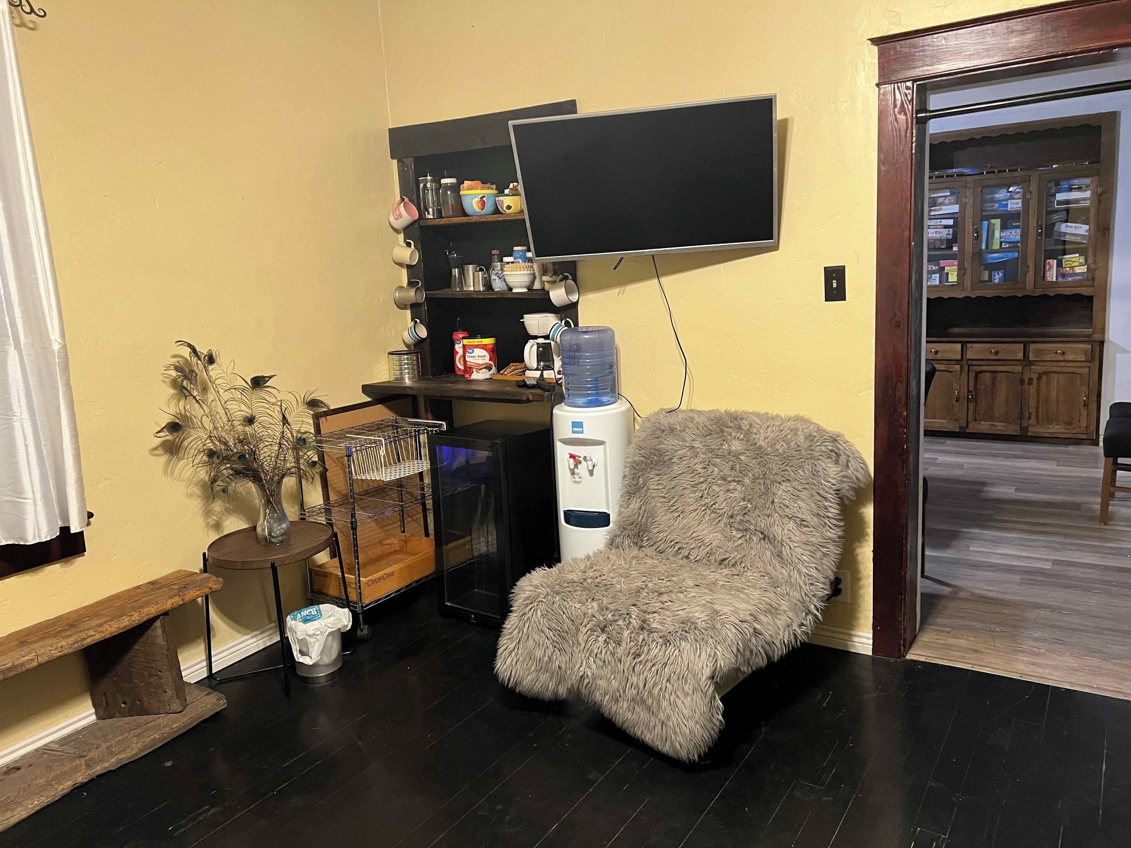 Throughout the years, this house has been lovingly expanded by creative owners, resulting in delightful quirks like uneven floors and varied wall thicknesses that add to its charm. Modern amenities include a coffee bar for your morning brew and a bouldering crash pad for the adventurous at heart. Unwind in the outdoor room or soak in the hot tub under the stars for a truly relaxing experience.