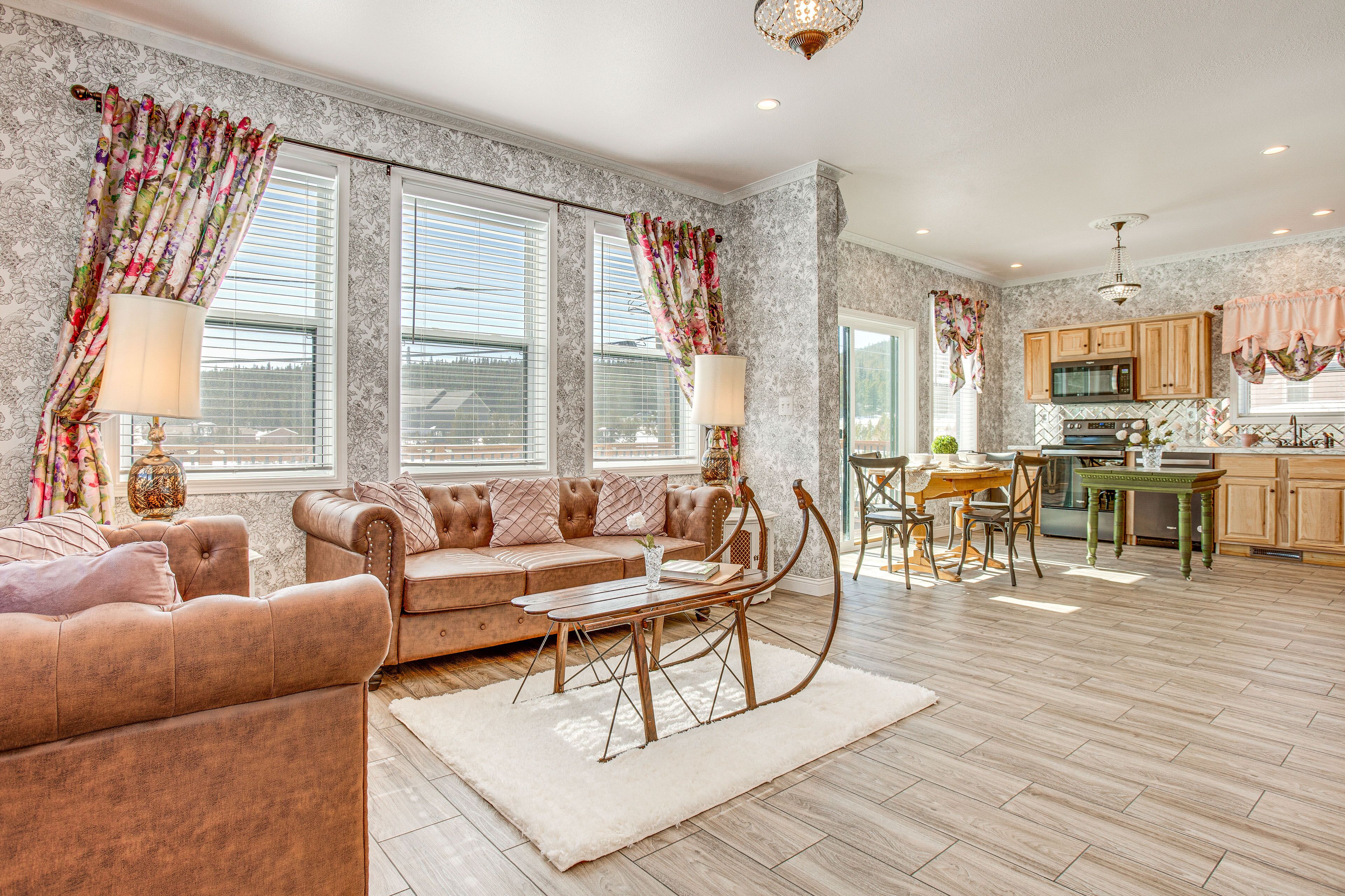 Welcome home to 'Chalet Auguste!' Step inside this enchanting 2-bedroom, 2-bath vacation rental to find a world of whimsy and relaxation. Settle into the one-of-a-kind hobbit hole with your favorite book, or cook up a feast in the open-concept kitchen. Outside, the private deck offers stunning views of the pond and majestic mountains. Walk to St Mary's Glacier for scenic hikes, embark on whitewater rafting adventures, savor local dining in Idaho Springs, or ski one of 7 World-Class ski resorts!