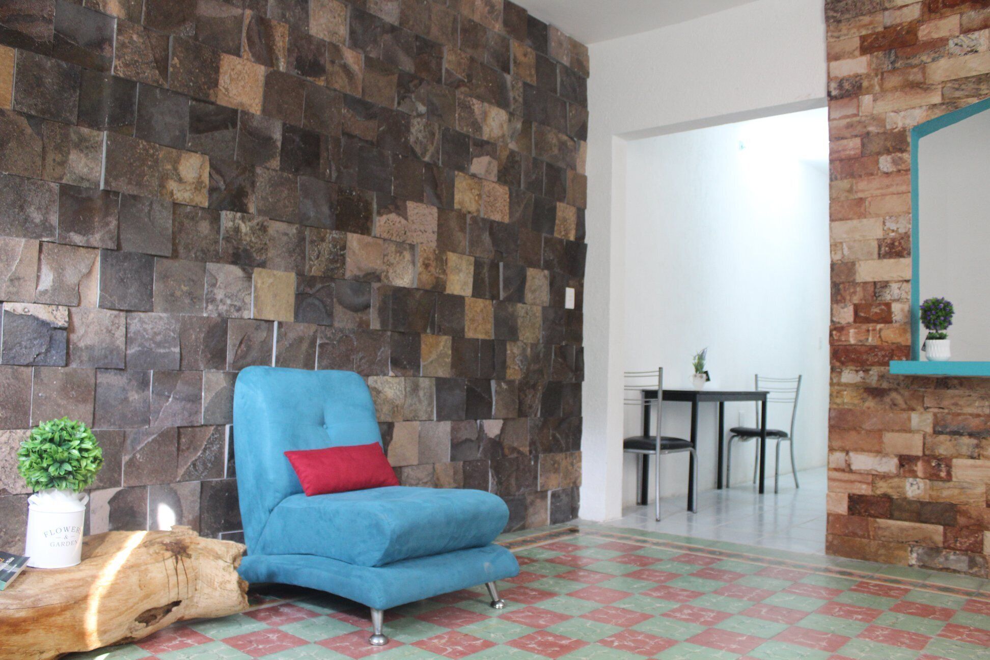 The decoration is eclectic The result of the mixture of this style with the vintage and mid-century with the combination of a Veracruz environment makes it something spectacular. To this mixture, which is monochromatic in origin, the eclectic style fills it with color with blues that emerge from the sea, green grass and stone prints, a new heated house, inside the center of Veracruz, which will make your accommodation transported to the Veracruz antiguo.Ideal for tourists and business travelers