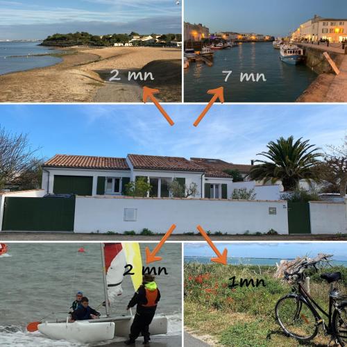 Surrounded by views of the quiet street, La Maison de l’Ocean - plage à 75 mètres is a sustainable vacation home in Saint-Martin-de-Ré, offering guests an environmentally friendly accommodation close to La Cible. This property offers access to a patio, free private parking, and free Wifi. The accommodation offers a concierge service and private check-in and check-out for guests. Offering a terrace and garden views, the vacation home includes 3 bedrooms, a living room, satellite flat-screen TV, an equipped kitchen, and 2 bathrooms with a walk-in shower. Guests can enjoy a meal on an outdoor dining area while overlooking the inner courtyard views. For added privacy, the accommodation has a private entrance and soundproofing. Guests at the vacation home will be able to enjoy activities in and around Saint-Martin-de-Ré, like cycling, fishing, and hiking. There is a garden with a barbecue at this property, and guests can go walking tours nearby. La Rochelle Train Station is 16 miles from La Maison de l’Ocean - plage à 75 mètres, while L'Espace Encan is 16 miles away. The nearest airport is La Rochelle - Île de Ré Airport, 11 miles from the accommodation.
