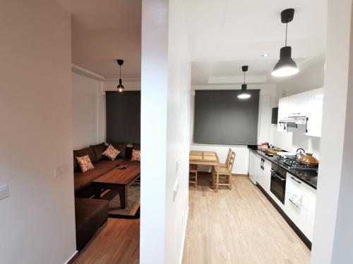a cozy and bright apartment, it has a private terrace overlooking the sea, a open living room with a comfortable sofa where you can either lie down and watch TV, reed a book or just chill and enjoy the sea view. you have a kitchen with necessary equipment you need for making your morning coffee your breakfast your favorite dish . the apartment has a bedroom with double bed and closet as well as a private bathroom.