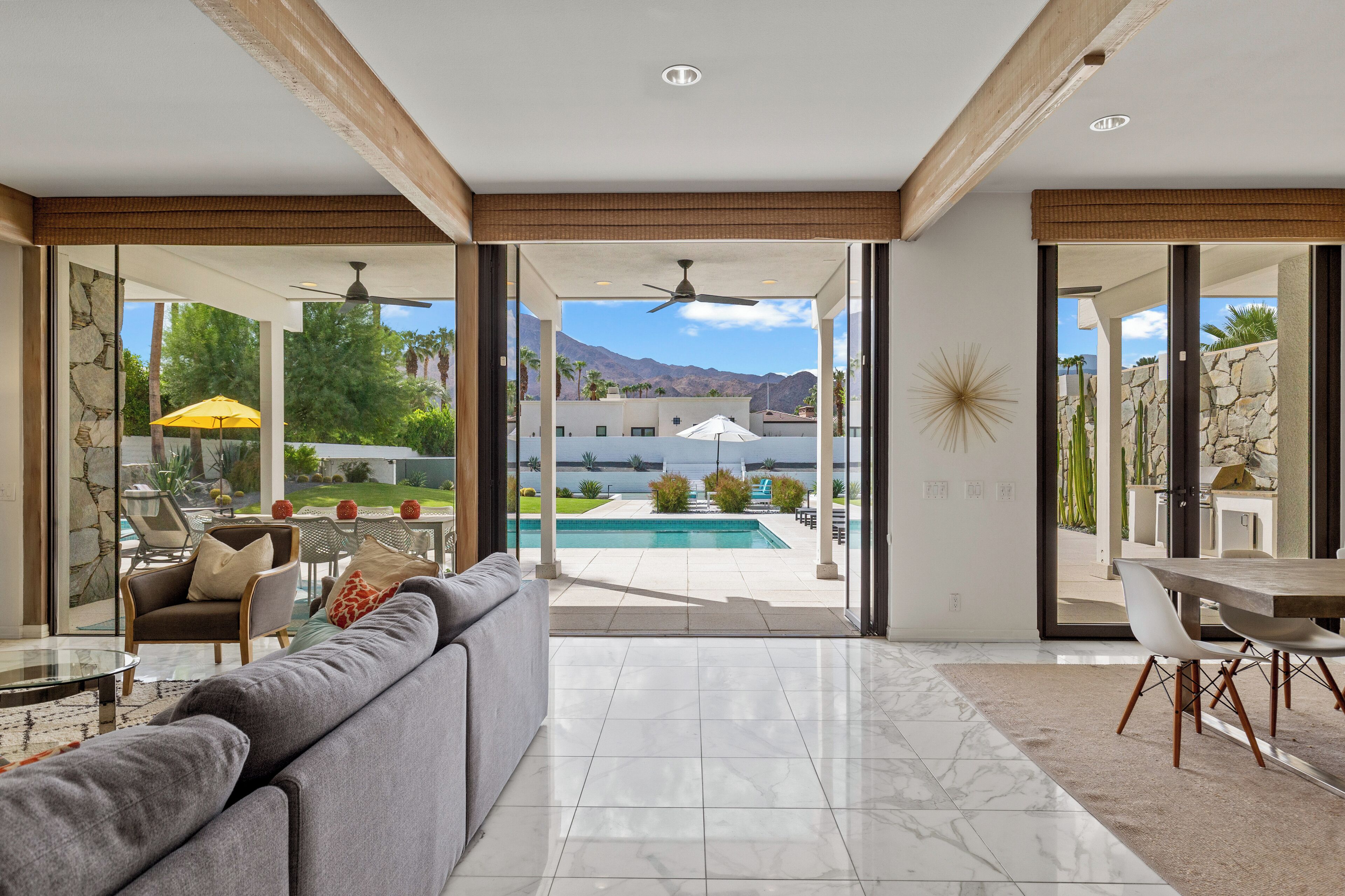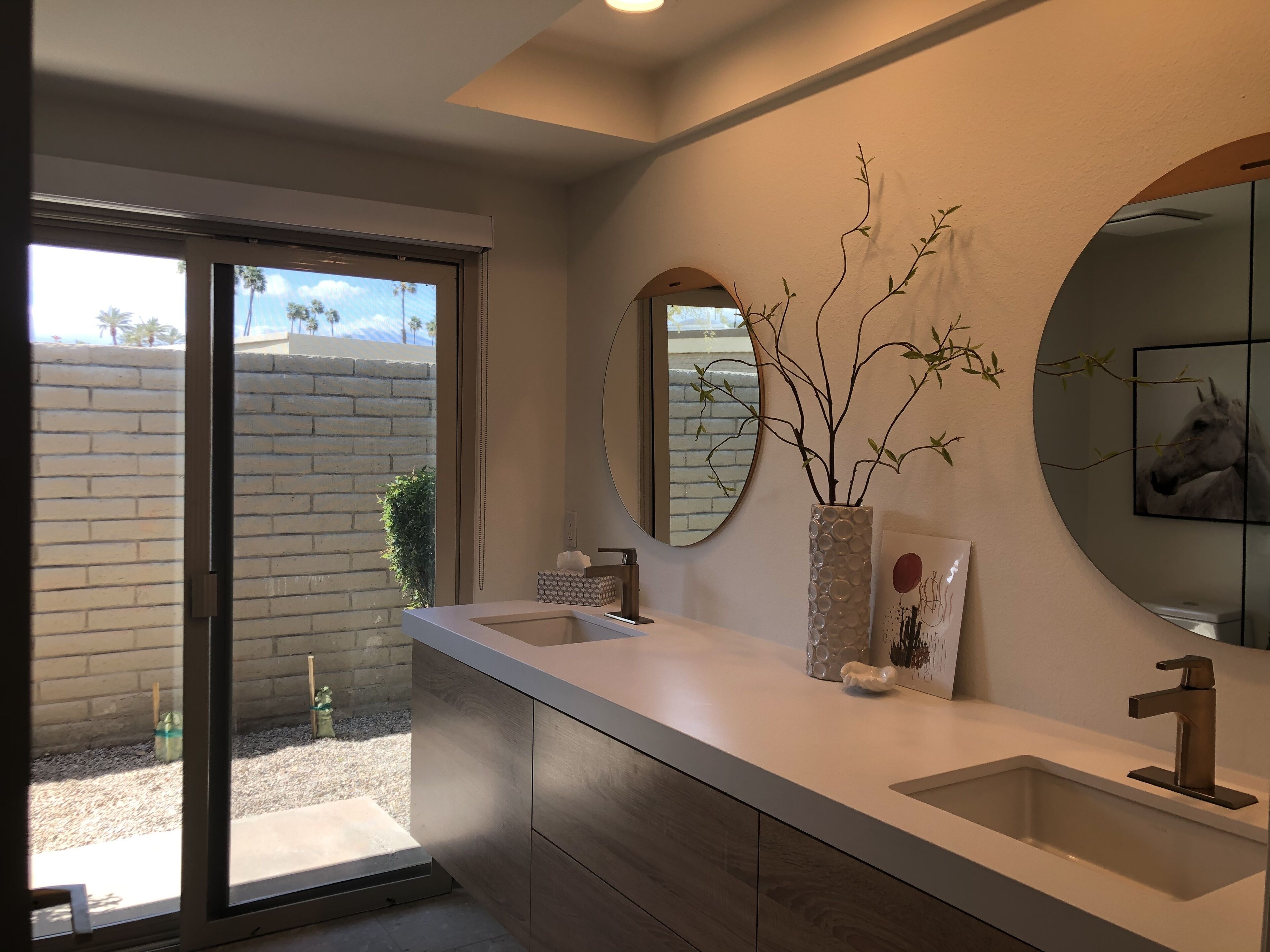 Very private gated community, 3 bdr/ 2 ba, 2024 sq ft with a complete interior remodel (completed Feb. 2021) Mid Century Modern home with a simply spectacular view of Eisenhower Mountain and lots of open green space between units affords privacy. Comfortable, spacious, light, bright and airy feel carried throughout the condo. The complex has lots of walking paths, 6 pools (2 heated with adjoining hot tubs, one of which is 35 yards behind our home), two tennis courts (one with pickle ball markings), putting green, 4 hole - pitch and putt golf course. We are close to any and all attractions of desert resort living and hiking trails galore. El Paseo Drive and The Indian Wells Tennis Gardens are located 3 miles away.