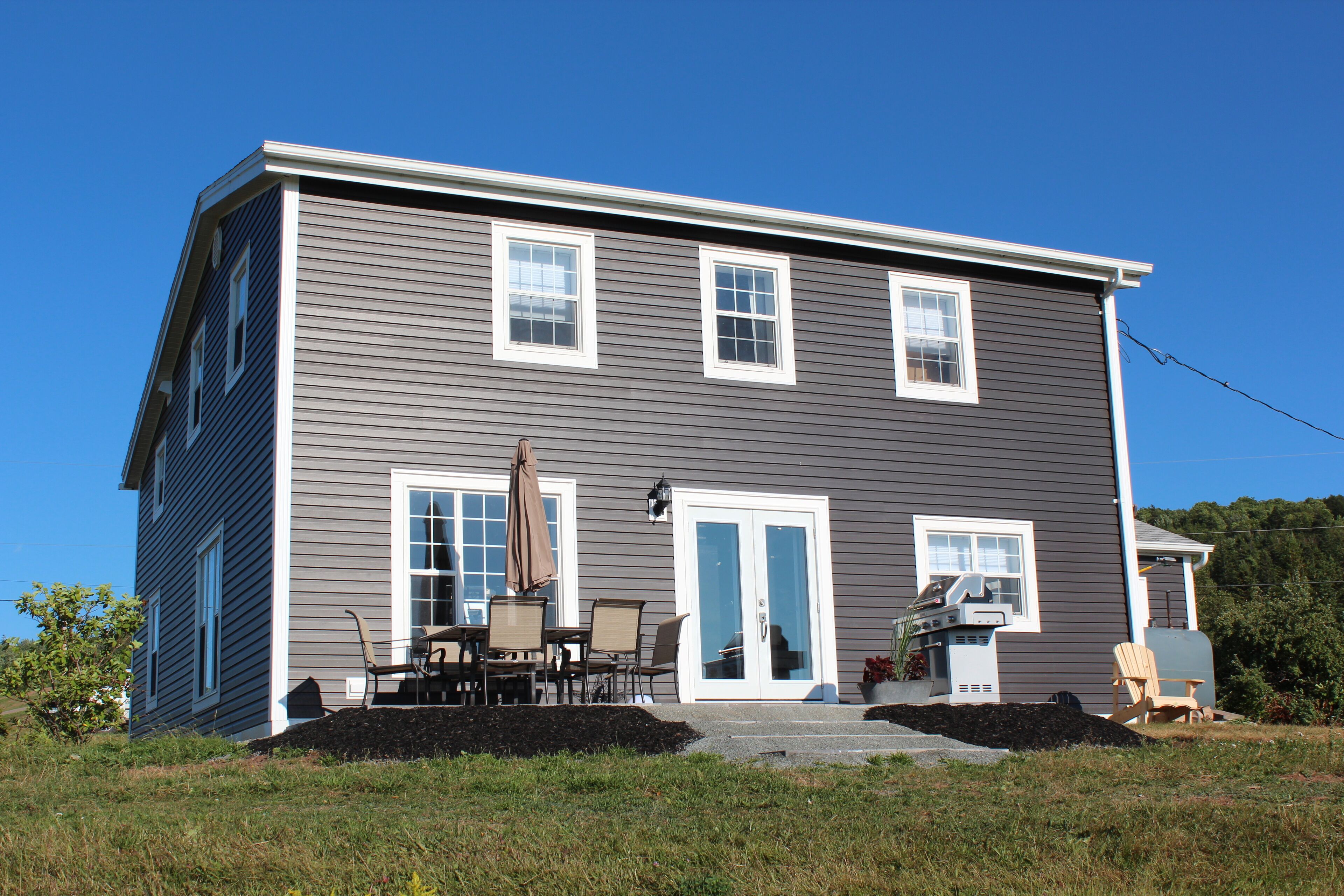 The house sits upon seven acres surrounded by spacious lawns for yard games, wild roses, flowers and trees beyond. This ensures complete privacy, while only a few minute drive from golf and all town activities and amenities. Come lounge on our expansive deck and patios and plan your days of golf, beach, kayaking, fishing, horse back riding, hiking, and exploring the Cabot Trail. Then relax at days end, as you watch from your perch taking in the beauty of the setting sun over the warm waters of the Gulf of St Lawrence. If it sounds too good to be true, come see for yourself.