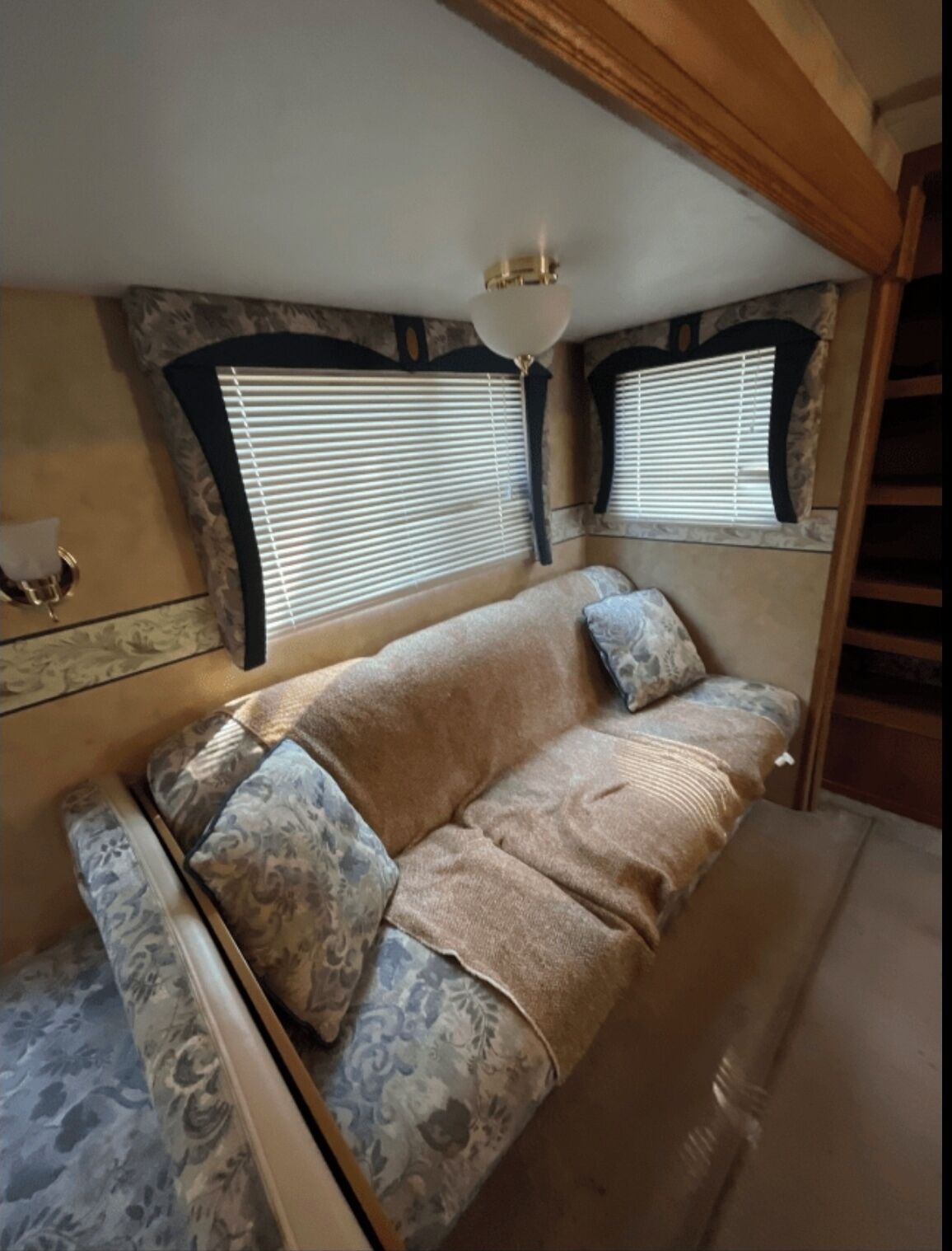 2006 Jayco Jay Flight RV Trailer. Sleeps 7 people. Queen size bed with a down comforter and pillows--separated from living area. Bathroom with toilet, vanity and linens (towels, wash clothes and RV toilet paper). Full sized shower with toiletries (shampoo, conditioner and body wash). Living area includes television with Roku Stick, Bose surround sound system and full-size couch that converts into a bed. Kitchen includes refrigerator, gas range, sink, utensils, and dining table that converts into a bed.