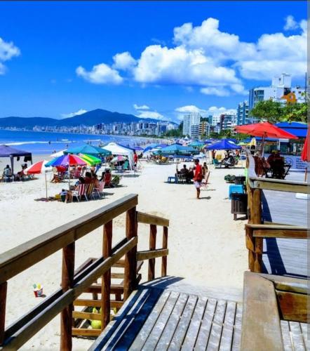 A few steps from the best beach of Santa Catarina - dead end street - on the promenade - all rooms with exit to the terrace overlooking the sea - terrace with barbecue with sea view - with all the infrastructure - close to all amenities - quiet beach - garage for 01 car of medium size - lift - entrance with password to access - internet - Netflix 2 TVs. with collective antenna - building with excellent conservation, with only 23 apartments. Apartment structure: accommodates up to 8 people in comfort (1 suite with TV - 1 double bedroom - 1 bedroom with 2 single beds - 2 additional mattresses) - 3 bathrooms - air conditioning in all bedrooms, living room and kitchen - refrigerator - washing machine - microwave - small animal accepted - living room with TV - dining room - laundry room - very ventilated apartment with security.