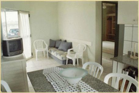 Apartment in a closed condominium with swimming pool, containing a room with Split air conditioning, double bed and a bunk bed, free Wifi, living room and kitchen combined with fan, individual barbecue on the balcony, bathroom, closed parking with electronic gate, external shower, is 100 meters from the sea and 900 meters from the third stone, about 1.2 km from the center