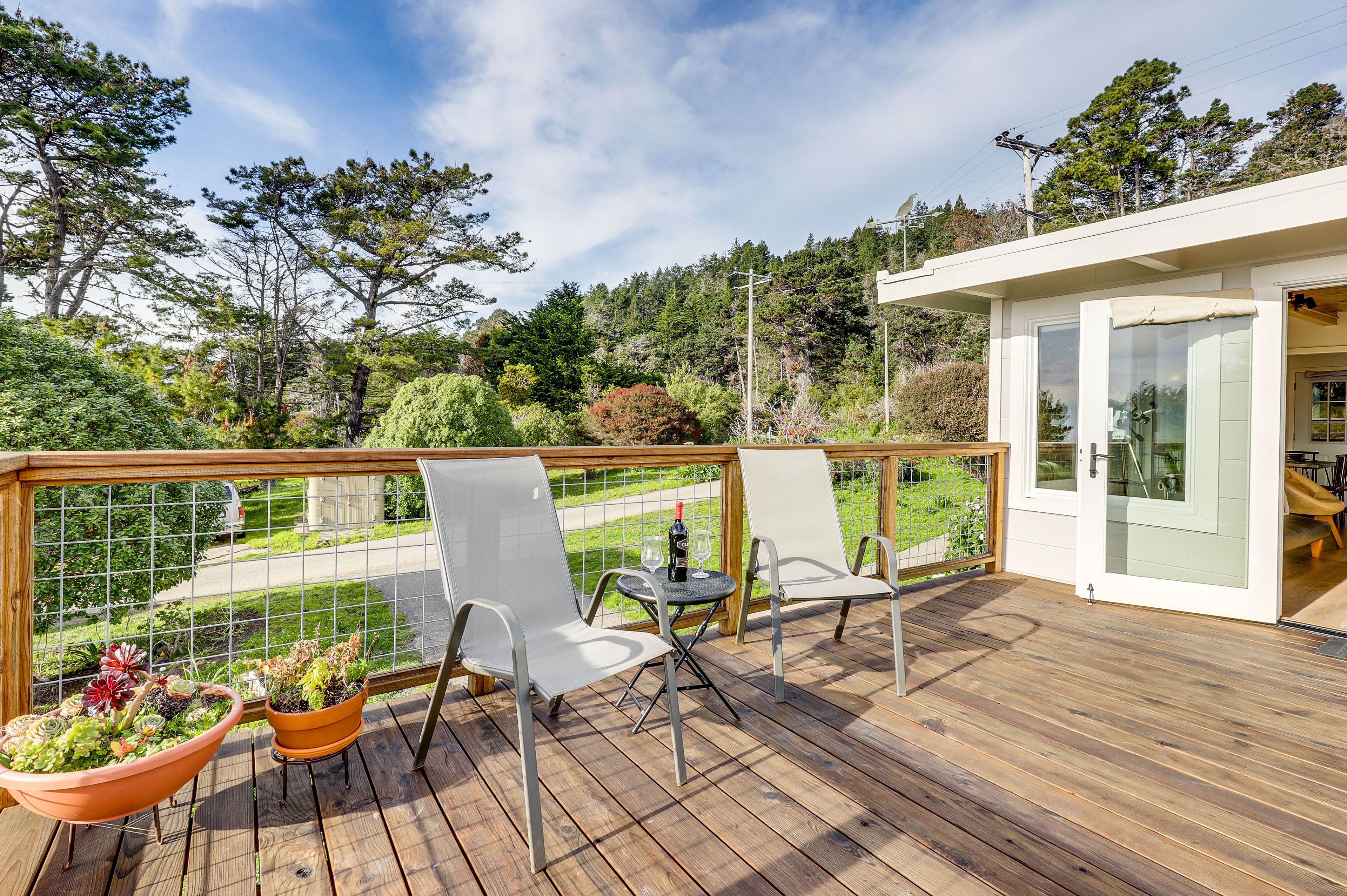"Gorgeous newly renovated property, modern, upscale furnishings and very well equipped. Thoughtful touches of books, games, toiletries and kitchen condiments were welcome. Beautiful views from the very spacious deck, easy stroll to bluffs where could hear seals barking and watch hawks swooping. We had a wonderful long weekend there, even extended our stay to ride out a dramatic coastal storm in this warm, cozy, lovely home from home" written by guest.