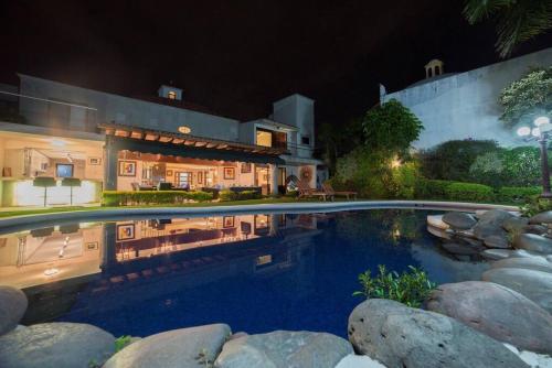 Offering a garden, Casa para 13 en Cuerna provides accommodations in Acapantzingo. This property offers access to a terrace and free private parking. The vacation home features a year-round outdoor pool and a 24-hour front desk. With free Wifi, this 4-bedroom vacation home offers a flat-screen TV and a kitchen with a microwave and fridge. Towels and bed linen are offered in the vacation home. The accommodation is non-smoking. There is an on-site bar. Robert Brady Museum is 4.1 miles from the vacation home, while Archaeological Monuments Zone of Xochicalco is 18 miles from the property. Benito Juarez International Airport is 53 miles away.