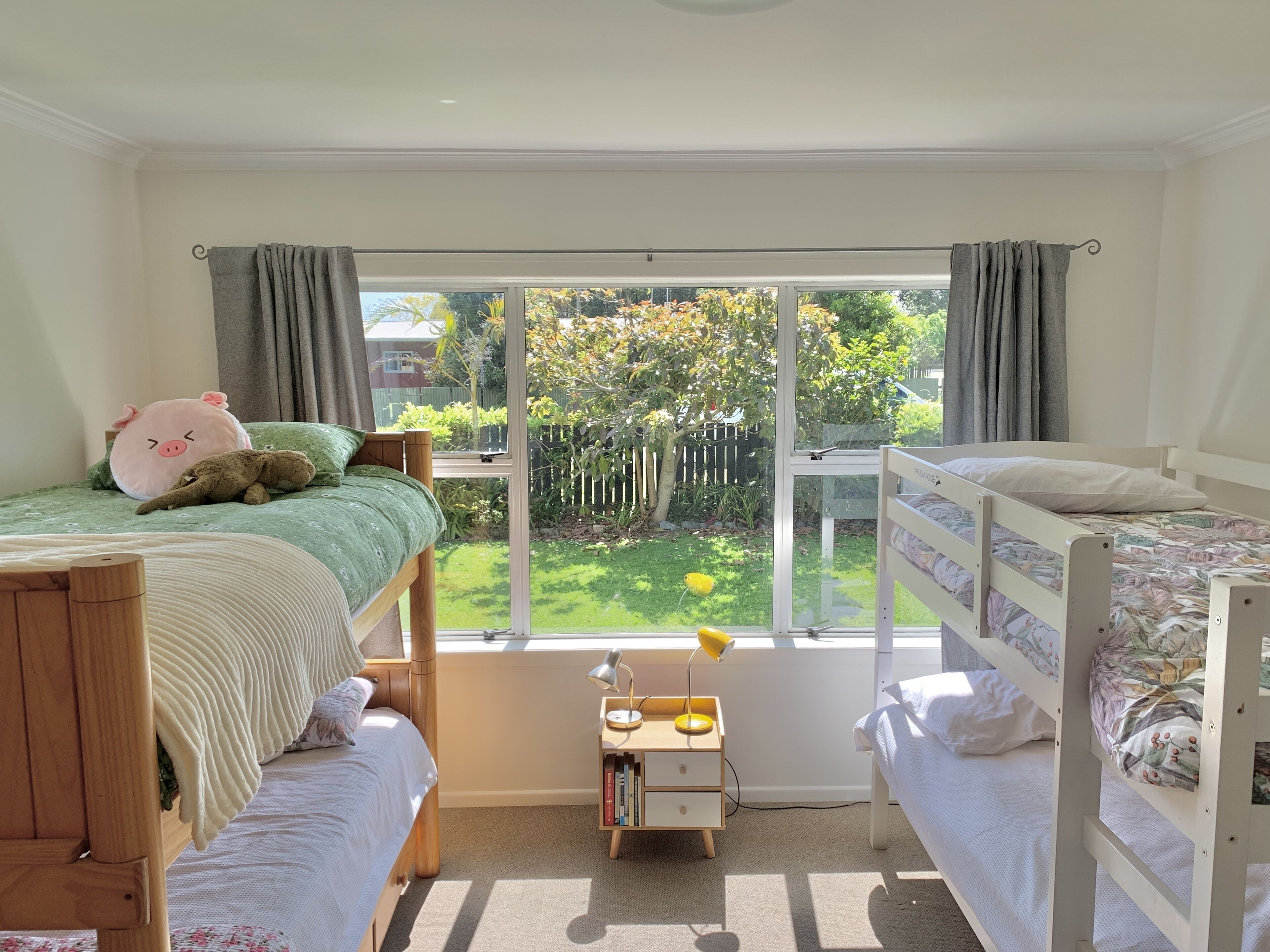 The Bach offers 4 bedrooms and 3 bathrooms. It has 2 master bedrooms with private ensuite bathrooms, and the 3rd bathroom is a shared bathroom/laundry.