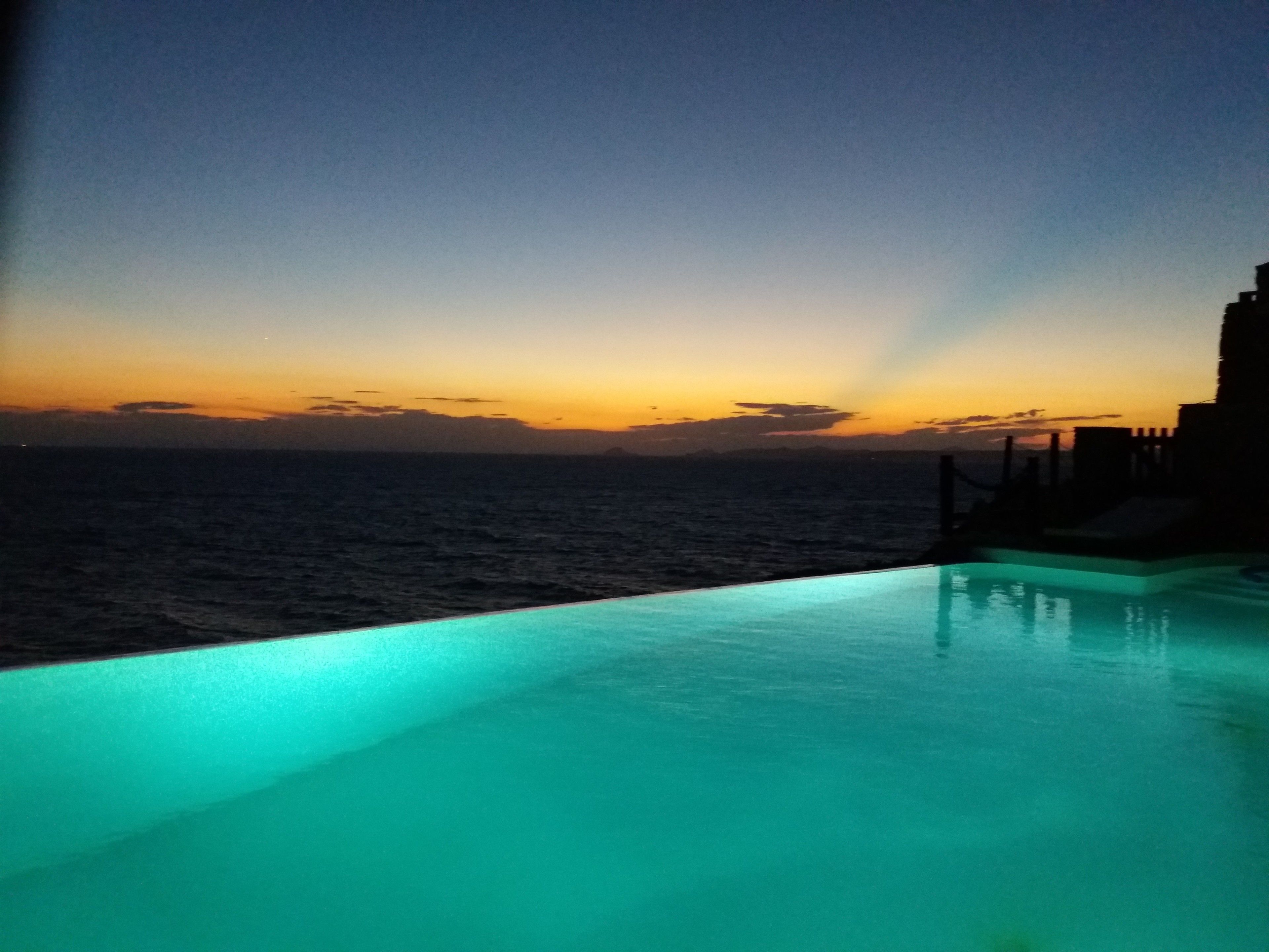 It might seem a tad strange to the reader but I hardly ever listen to music when I visit the Pool House. The stillness and smells of the soil make all man-made devices and sounds seem out of place; alien incursions unsettling my natural habitat. Before your eyes and at the edge of the pool unfolds a limitless horizon of barren Cycladic land, seawater, and bluish sky. All right, maybe I have a thing for the hyperbole, and I do play around with my smart phone while resting on the chaise longue just before dinner is served under the reed straw pergola.