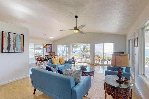 Stunning Ocean Views - Whale House Hawaii is a recently renovated vacation home in Hawaiian Paradise Park where guests can make the most of the free bikes and garden. This property offers access to a balcony, free private parking, and free Wifi. The accommodation provides private check-in and check-out and bicycle parking for guests. Providing a terrace and sea views, the spacious vacation home includes 4 bedrooms, 2 living rooms, cable flat-screen TV, an equipped kitchen, and 3 bathrooms with a bath and a shower. Towels and bed linen are provided in the vacation home. The property has an outdoor dining area. During warmer months, you can make use of the barbecue facilities and eat on the private patio. Guests at the vacation home will be able to enjoy activities in and around Hawaiian Paradise Park, like snorkeling, fishing, and hiking. The vacation home has a picnic area where you can spend the day outdoors. Pana'ewa Rainforest Zoo is 14 miles from Stunning Ocean Views - Whale House Hawaii, while Lava Tree State Monument is 14 miles away. Hilo International Airport is 21 miles from the property.