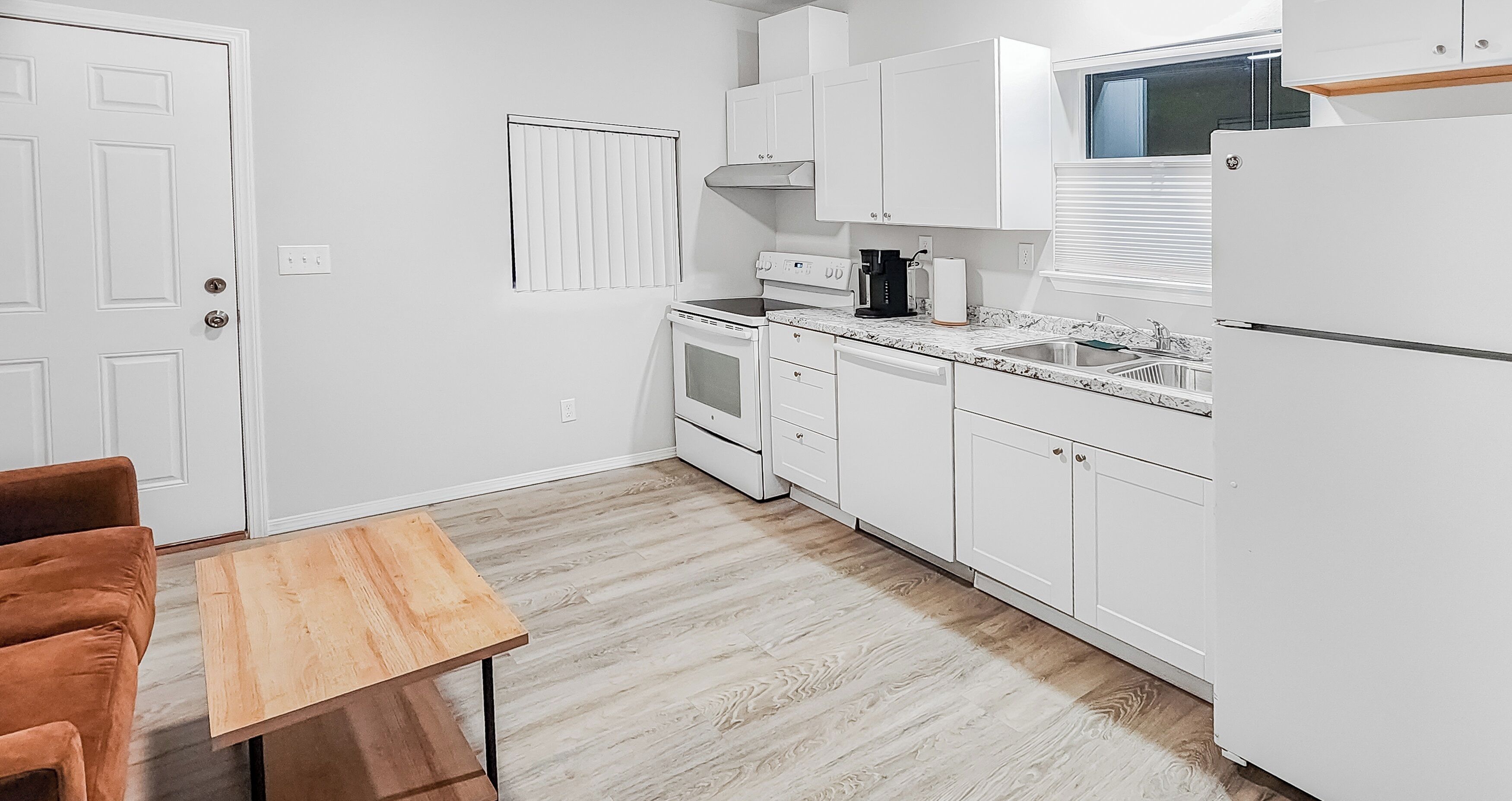 The remodeled ground level apartment is over 1,000 square feet of living space and is private with a separate keypad entry.
