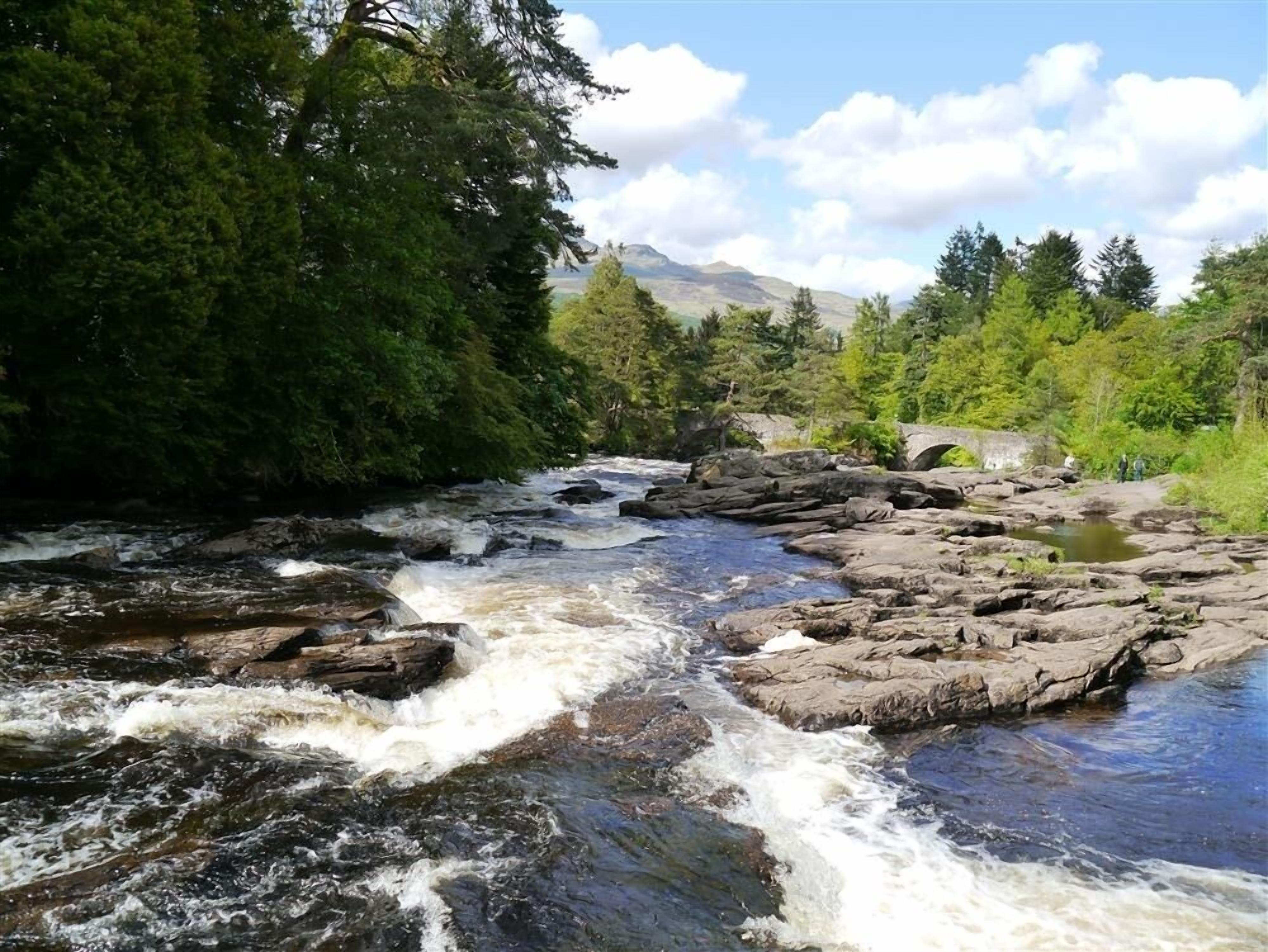 Bedroom 2: 2 x Single (3ft) Beds. Electric central heating, electricity, bed linen, towels and Wi-FI included. Initial fuel for wood burner included. Travel cot, highchair and stairgate available on request.. Large enclosed, lawned garden with sitting-out area, garden furniture and BBQ. Private parking for 1 car. No smoking. Please note: There are 5 steps in the garden.. One of only eight cottages overlooking the scenic Falls of Dochart, Gracedieu is a traditionally built terraced cottage dating back to the 1700s with a cosy wood burner, many original quirky features and views of Dochart Bridge which dates back to 1760. The rear of the garden was originally the old railway track with the sleepers still in place and neighbours open countryside. The garden room has been converted from the old bothy, dates back to the 1700s and is perfect for you to open the double glass doors on a warm summer’s night. You are just a short walk from the village amenities including the shop, cafes, bars, restaurants and historical sites. Killin is a popular destination for outdoor activities, whether you like mountains to climb or leisurely country walks, the Rob Roy Way passes through the village. With salmon/trout fishing (at cost, licence required), water sports, mountain biking or cycling along the many lanes and cycle paths, there is something for everyone. This area is steeped in history with the Killin Stone Circle and Finlarry Castle and Chapel. The enclosed rear garden is the perfect place to relax and enjoy magnificent scenery with wonderful views of the Tarmachan Ridge and Ben Lawyers. Loch Tay is on Killin’s doorstep, only a mile away. Visit Crianlarich, 13 milers, Callander, 21 miles, Stirling, 37 miles, and Perth, 43 miles.