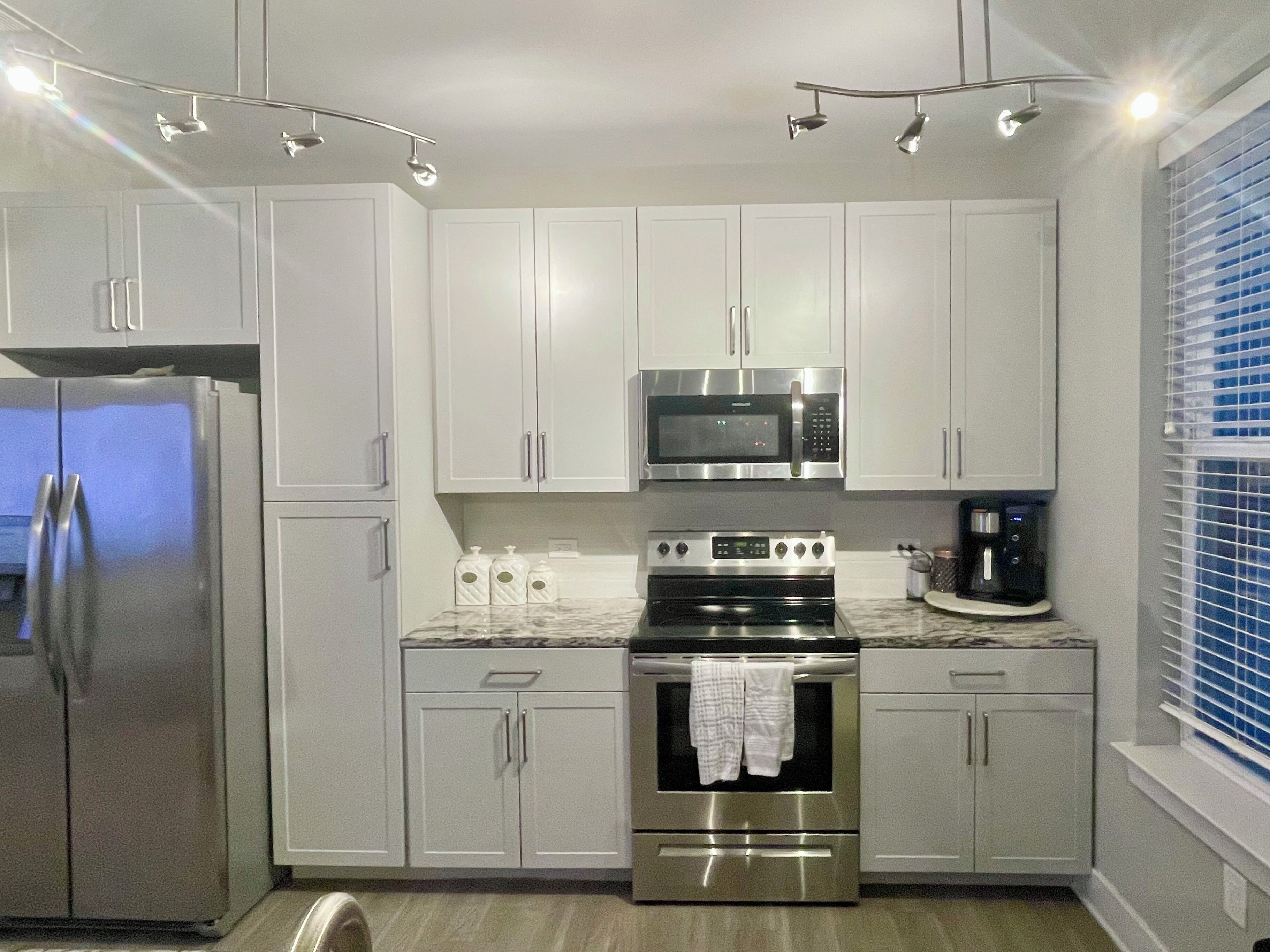 *Full kitchen stocked with kitchen appliances, utensils, cookware, Keurig coffee machine with variety flavored coffee pods and more.