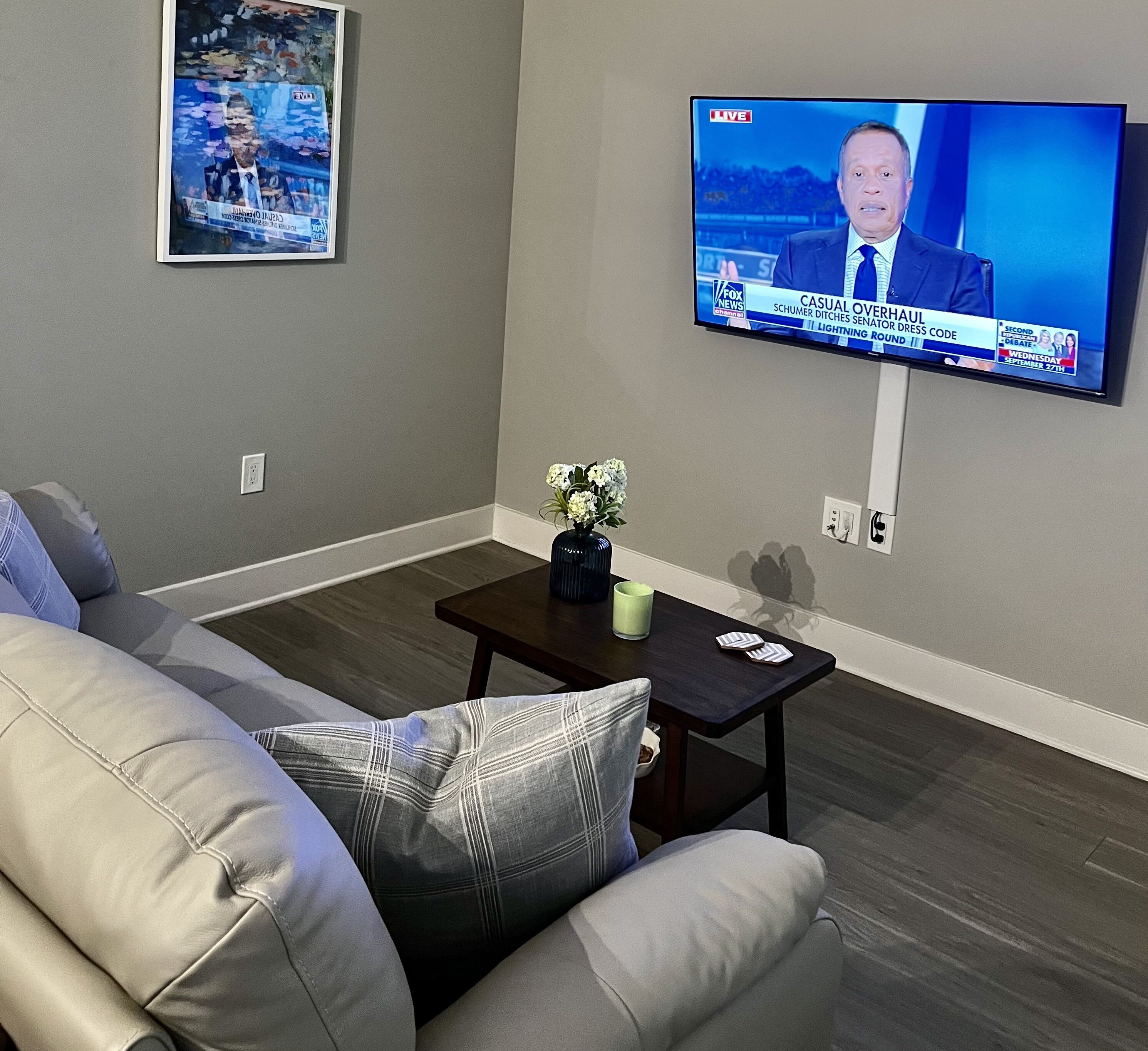 The Serene Sanctuary is a private fully furnished one bedroom/one bathroom apartment featuring a spacious and beautifully styled living space thoughtfully and specifically designed with traveling professionals, medical families and corporate housing in mind. It is nestled within a quiet luxury community in King of Prussia exuding amenities of home and business with a resort style/feel. The perfect place to relax, unwind & recharge after a long day at work or the hospital with your loved one.