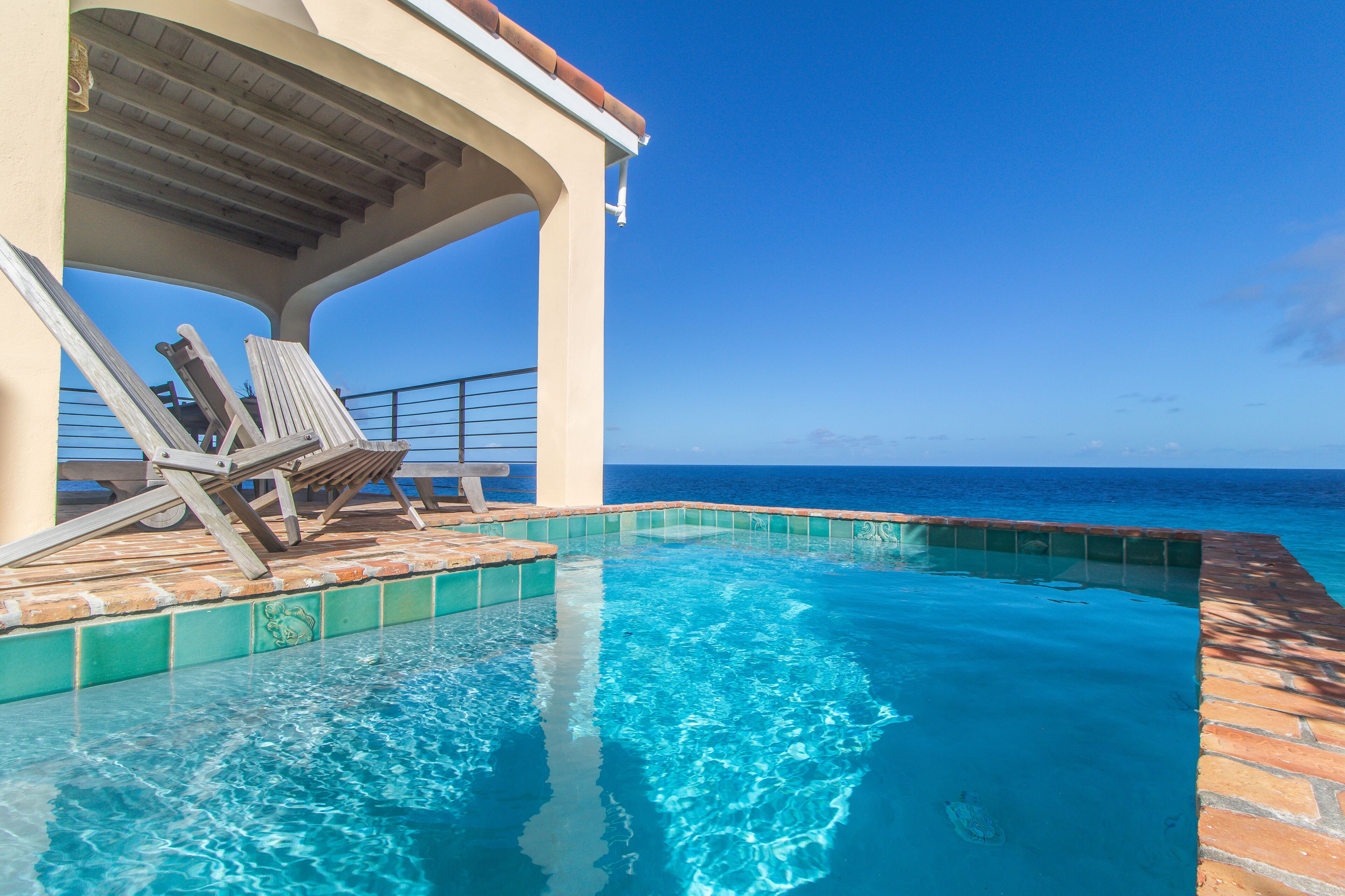 The Pearl at Cane Bay offers ultimate luxury, a private pool and amazing privacy for 2 literally hanging over the rocky shore of the Caribbean Sea. There is no comparison to staying in a private home on the Sea with no owners, guests or others around. Just you and the water. (And some Cruzan rum)