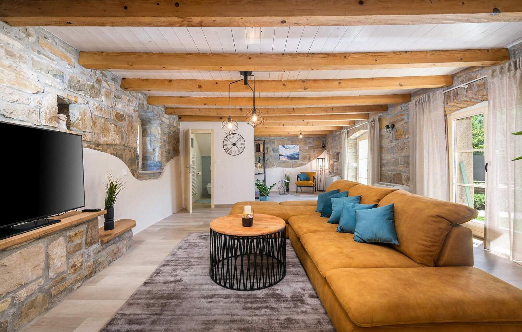 Your modern holiday home in Brajkovici near Pazin offers rustic elegance and maximum comfort. Settle down on the sunny terrace, equipped with cosy outdoor furniture, and enjoy the peaceful surroundings. The pool provides a refreshing dip, while the sauna offers relaxation for body and soul. Start your day with a relaxed breakfast on the large covered terrace and end the evening with a cosy barbecue. The spacious living area of the house invites you to relax. The rustic charm of the interior design creates the perfect feel-good atmosphere.