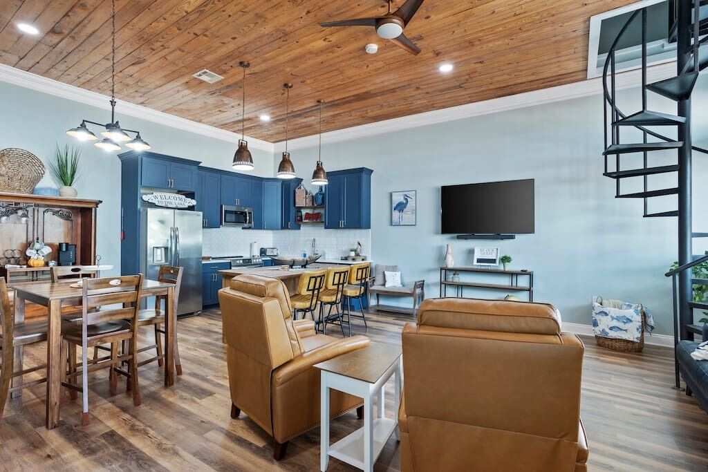 This gem has a full bathroom, a complete kitchen with all of the amenities, a queen size suite, queen size sleeper sofa, flat screen smart tv, free wifi, and a fireplace!