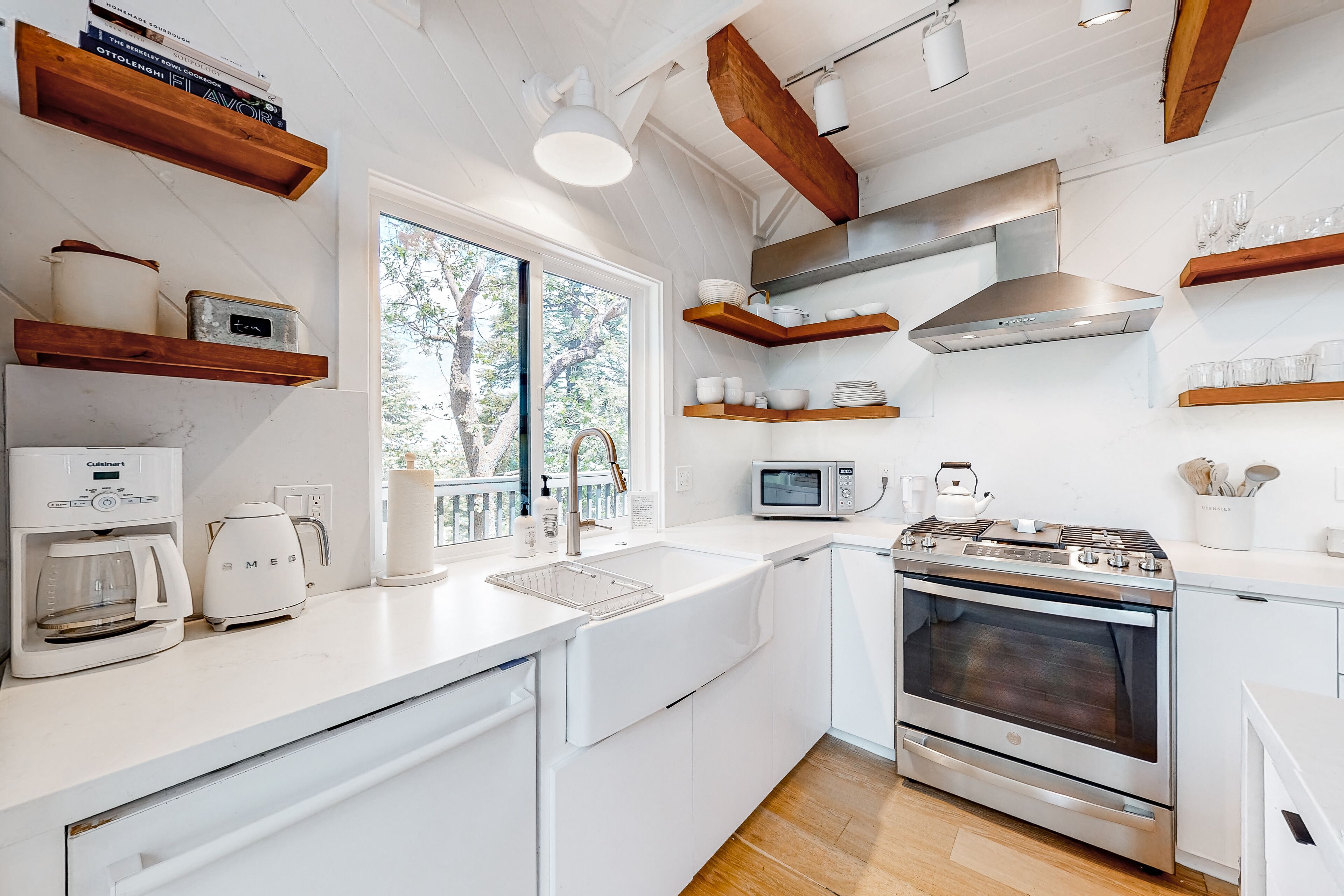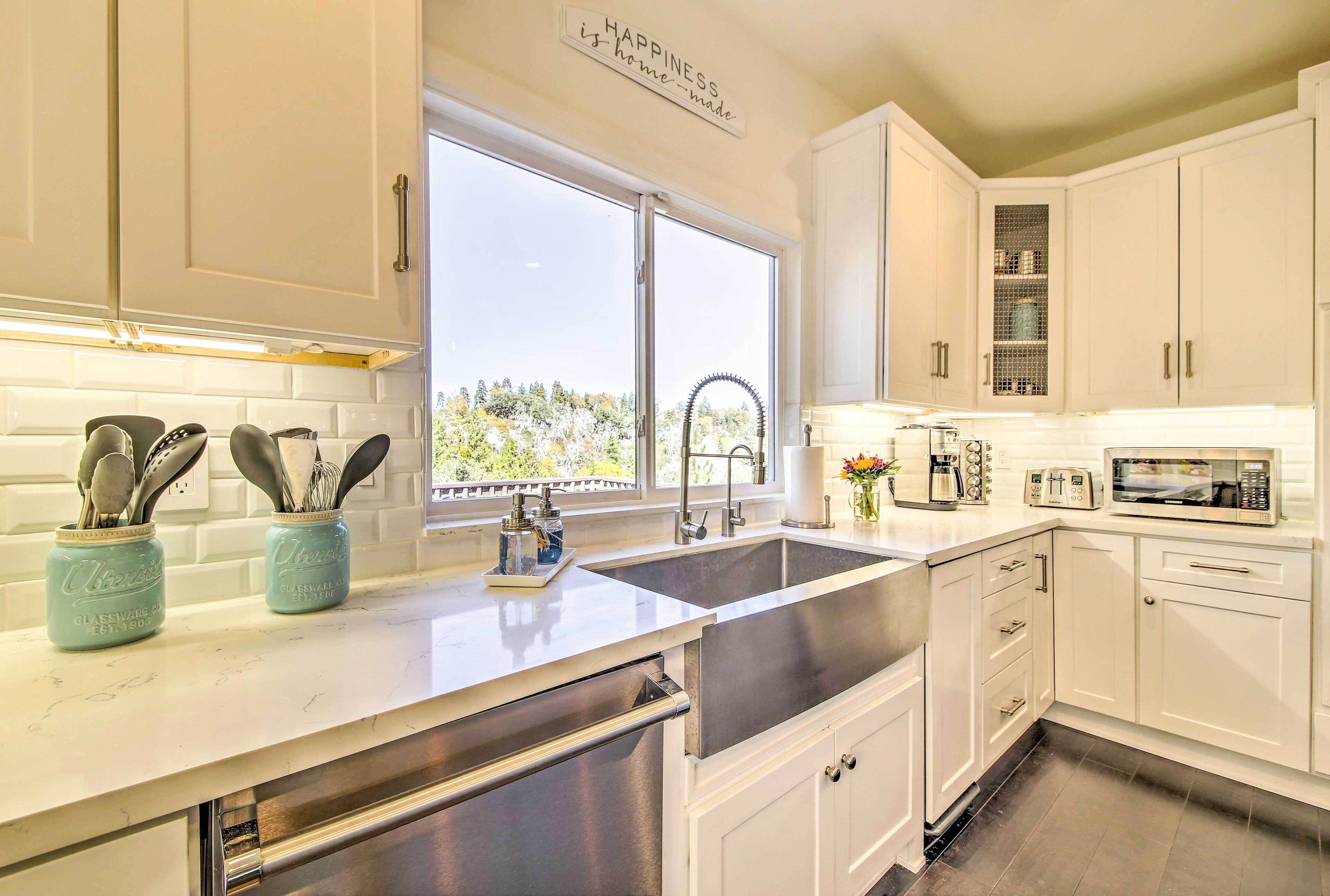 Kick off your vacation with a cookout on the expansive deck while taking in the stunning forest views. While the steaks are sizzling on the gas grill, prepare a few sides in the fully equipped kitchen with stainless steel appliances.