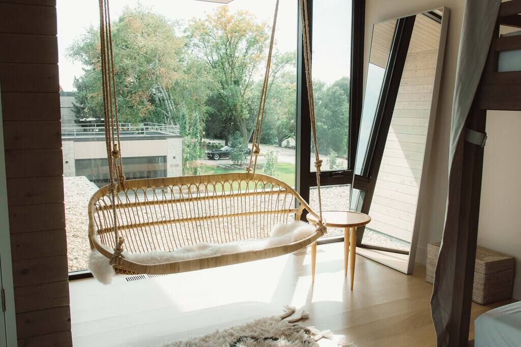 Part of The Elsewhere Collection, this modern 3-bedroom lakefront guest home sits on the shore of Lake Winnebago in Oshkosh, WI. Minutes from Downtown Oshkosh and Menominee Park, the home is a quick ride or walk from local restaurants, bars, shopping and entertainment. Available for EAA, the home is about a 15-minute drive to EAA grounds. Floor-to-ceiling windows provide immaculate views of the lake. With access to an on-site dock, guests are welcome to enjoy bring their own boats or kayaks.