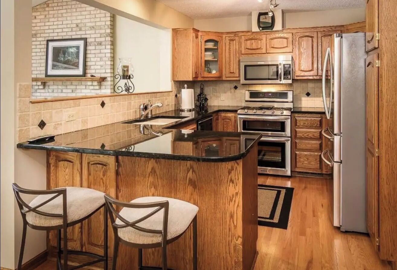 Guests are sure to enjoy a memorable vacation in this fully furnished, 4 bedroom/4bath 3,800 sq. ft. single family home. The main/master bedroom has a king sized bed, while the 3 remaining rooms are furnished with 2 doubles and 1 queen sized beds, comfortable for sleeping 10 people. With three full bathrooms, there will plenty of space for all guests to get ready without being crowded. The master bathroom boasts a beautiful tiled walk-in shower with dual heads with large dual sink vanity as well. The spacious living room is furnished with a gas fireplace, two sofas, sonos surround sound, 55" TV with DirecTV and an open concept inviting you into the gourmet kitchen. The kitchen is perfect for dining and entertaining as it is equipped with commercial grade appliances (including a Miele range/oven with center griddle) and fully stocked with all you'll need to dine in. The basement is built for entertaining and relaxing as it is fully furnished with a walk behind wet bar, 45" TV in the bar, 65" TV above the cozy stack stoned fireplace and plenty of seating on the wrap around leather couch. Can't leave your work behind? Enjoy the office overlooking a wooded backdrop and if the weather is cooperating, listen to the sonos surround system on the covered deck just steps off the kitchen and office. The heated oversized three car garage, big driveway, and street parking accommodate plenty of vehicles if needed. Situated in a quiet cul-de-sac just 20 minutes from downtown Minneapolis AND St. Paul, guests can enjoy peace and quiet at home or catch a quick ride into the city to enjoy any and all super bowl festivities that the city has to offer.