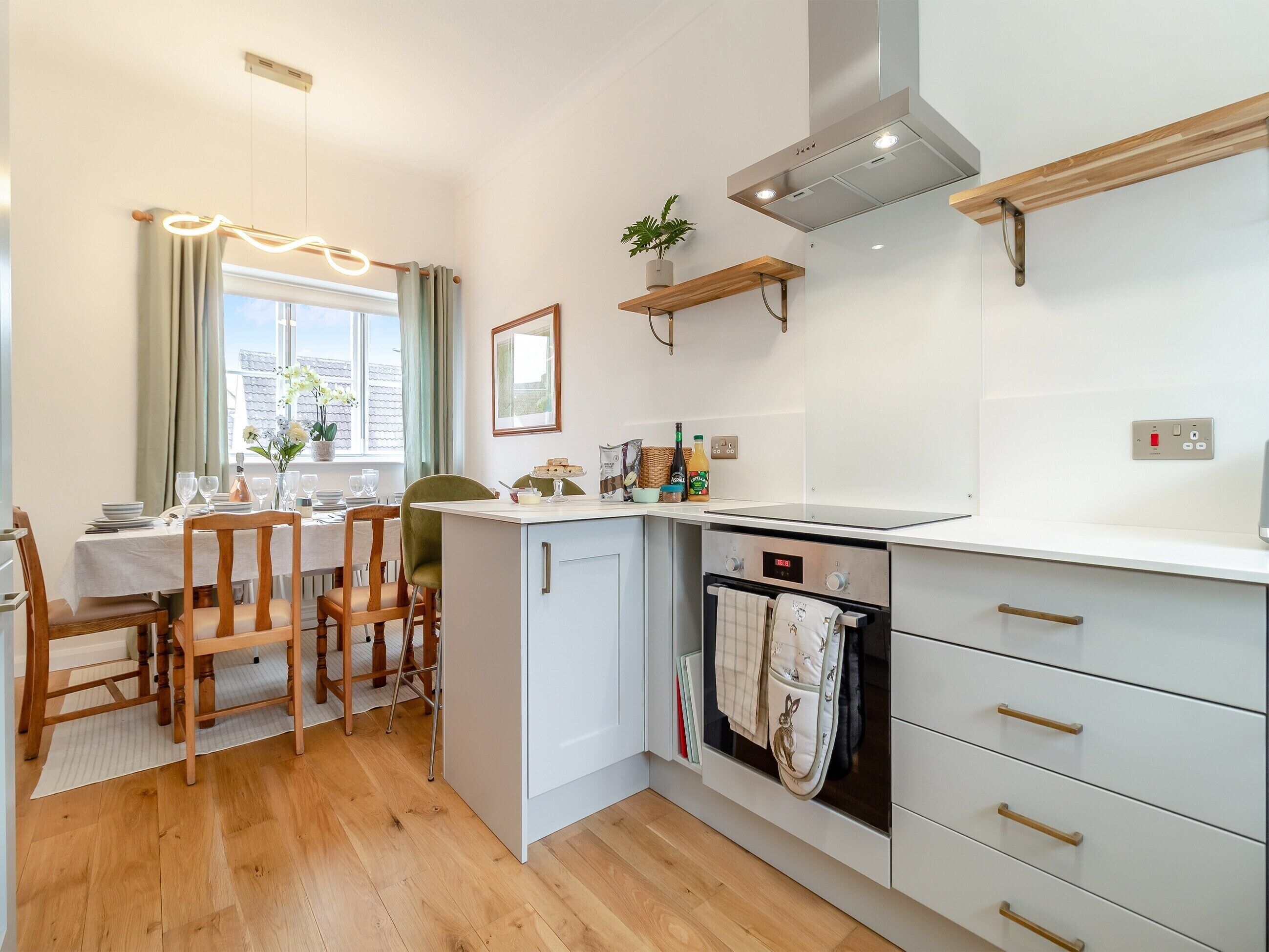 The property can sleep up to two people in perfect comfort. Accommodation includes a cosy sitting room with a variety of books and local magazines, as well as a TV and free WiFi. A recently upgraded kitchen contains a fridge with a freezer compartment, dishwasher and an oven with a four ring induction hob catering for guests looking for a quiet night in with a home-cooked meal. There is also a dining table which can seat up to 4 guests or provide laptop-friendly work space if necessary. The kitchen is equipped with a Nespresso coffee machine, toaster, kettle and microwave for your convenience. There is a beautifully finished ground floor shower room and a first-floor king size bedroom with an en-suite cloakroom.