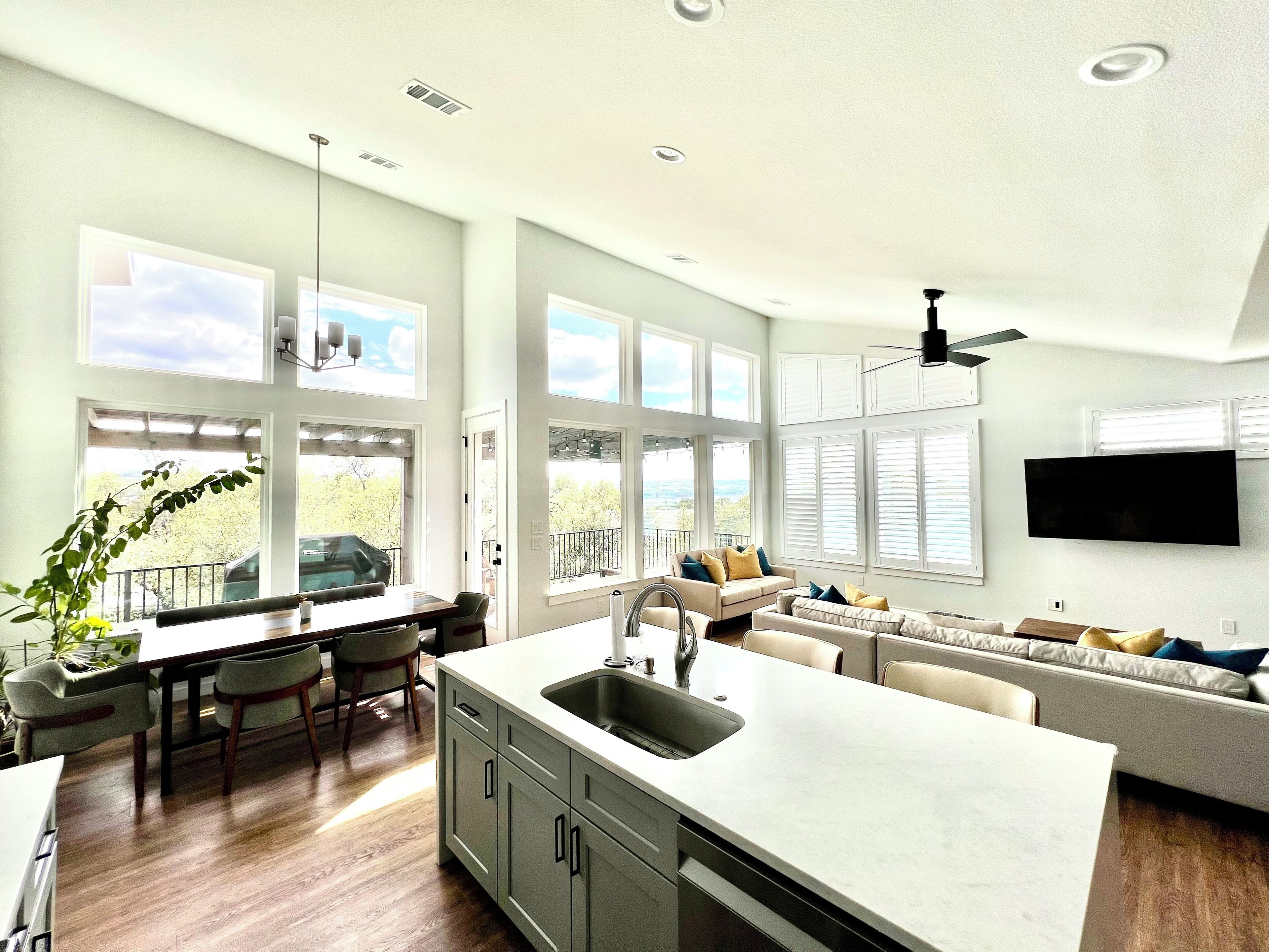 From the top floor of this Villa building, you can see straight up the Sandy Creek basin of Lake Travis, out to the main basin of the lake, and a vast picture of the Texas Hill Country! This beautifully appointed Villa also provides a very comfortable enjoyment of the morning sun, and protects you from the sometimes brutal afternoon sun. This 1,245 SF, three bedroom, two bath Villa is very accommodating and is just a couple of blocks from the HILLTOP smokehouse and has easy access to the walking trails, Kayak Club, and all of the amenities associated with the Hollows.