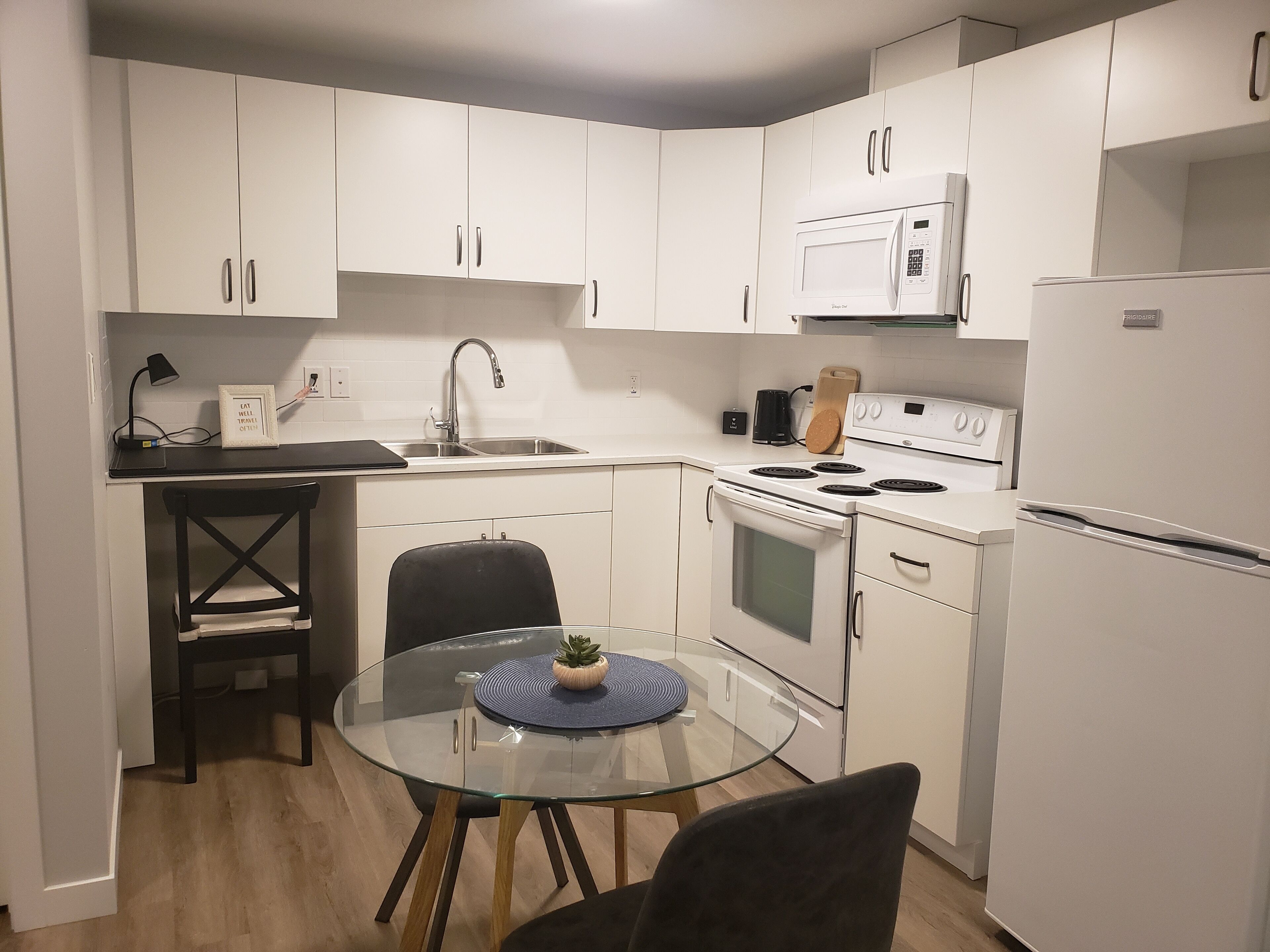 Free wi-fi, smart TV, Netflix, laundry, work station, a full kitchen as well as free parking. Everything to make your stay perfect.