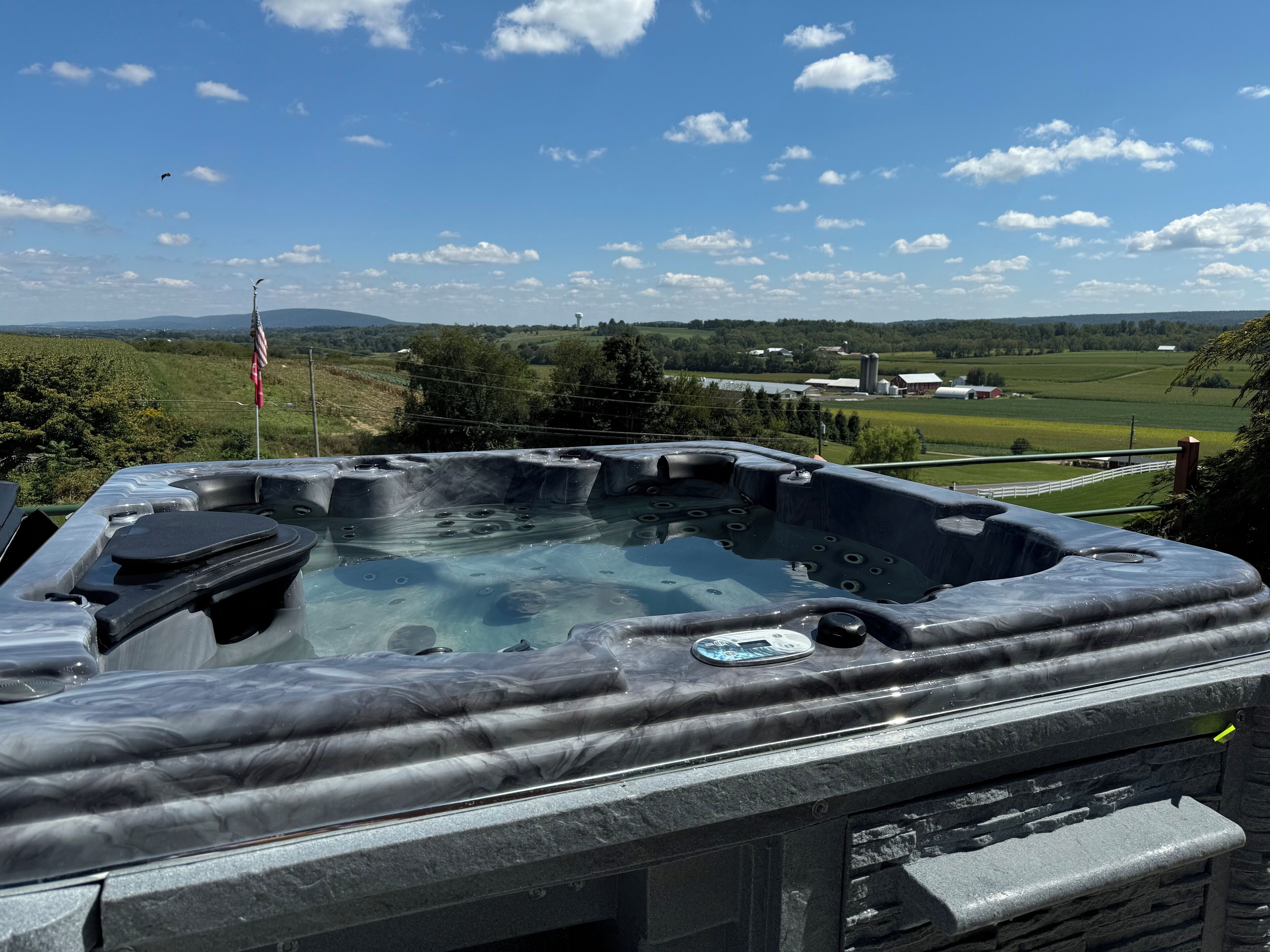 Entertaining dream come true for hosting your event and celebrating various special moments. With a private indoor pool heated to 85 and an outdoor hot tub with stunning endless views of rolling hills you and your guests will be amazed with the features of this home. The pool area is spacious with seating and a bluetooth projector to stream your favorite movie, show or the bag game. Relax in any of the 3 living room spaces or large open kitchen. Traveling to PSU for an event is convenient.