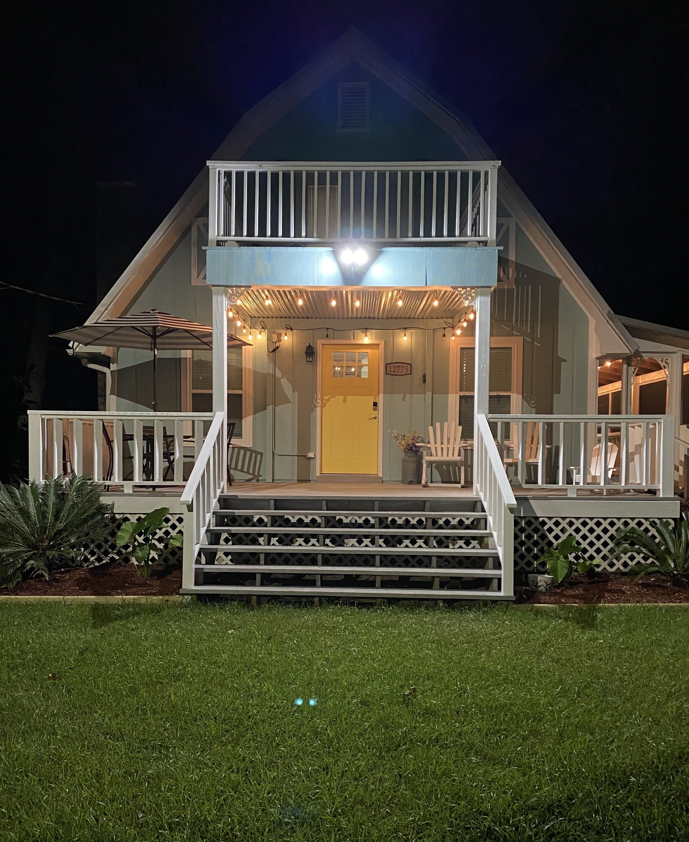 Adorable cottage at the bay. Home is located across the street from Perdido Bay. Perdido Beach is 11 miles, Orange Beach 15 miles, Foley 15 miles. Pensacola 3 miles. You have restaurants, golf course & grocery store just around the corner. Not a congested area or lot of traffic. This home has a nice deck and screened in porch to sit and listen to the crickets at night. Has a den down stairs with a sleeper sofa, electric fireplace for chilly nights, dining area, full kitchen with stainless steel appliances, queen size bedroom, full bath with walk in shower, laundry area. Up stairs you have bedroom with balcony, 2 full size beds and bathroom with tub/ shower. Flat screen tv’s in all bedrooms and den area. I furnish high speed internet with Netflix and Amazon Prime to watch all the movies you want. The front deck has rocking chairs and patio table with umbrella. The screened porch on side is screened with a large bench and small table for playing dominos or cards. Patio area has hammock and built in grill for your enjoyment. The entire yard is fenced in for your privacy.