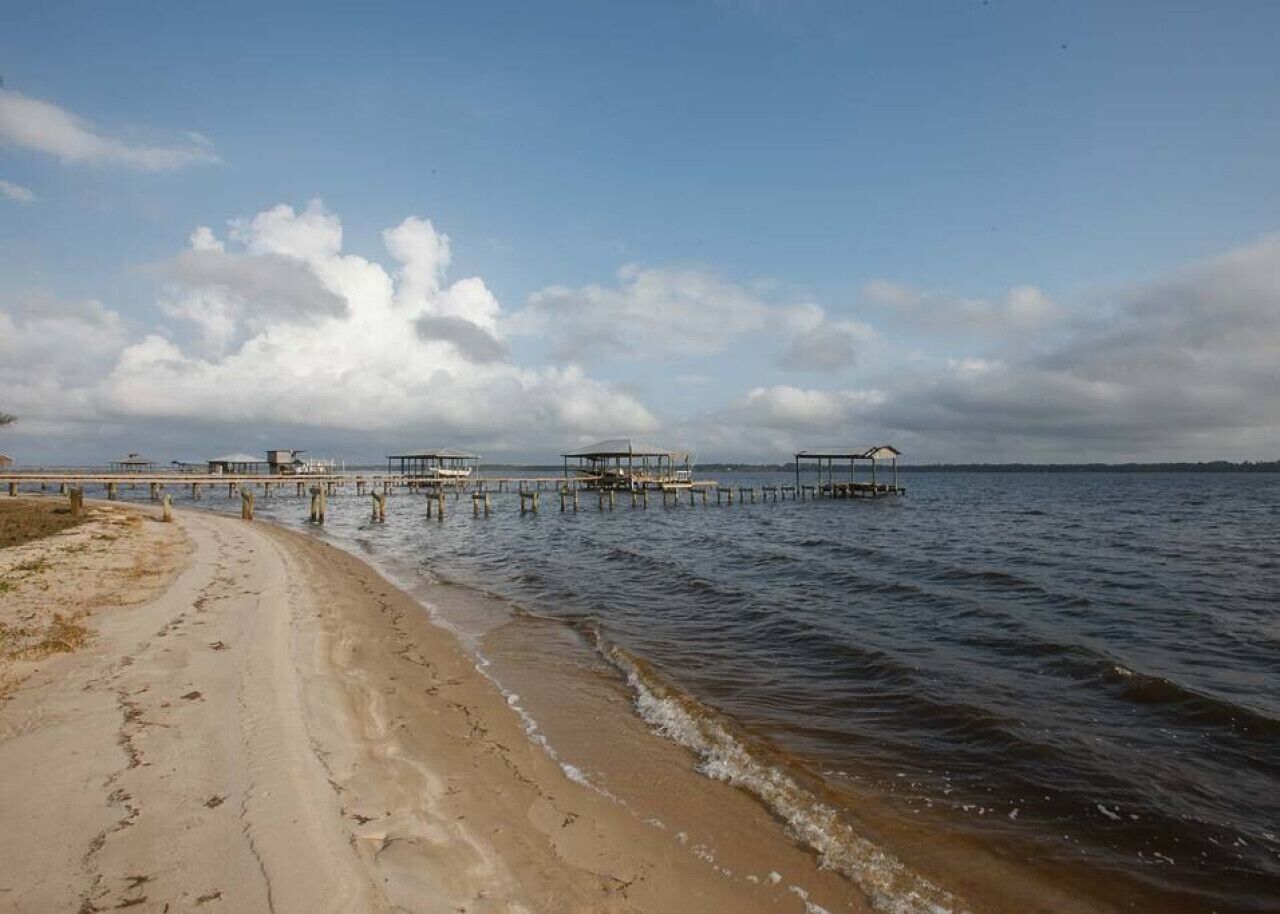 The D Cottage is located two miles from the Lillian Boat launch and Park. The park site includes a fishing pier and boardwalk, restroom facilities as well as areas for picnicking and enjoying the scenery.