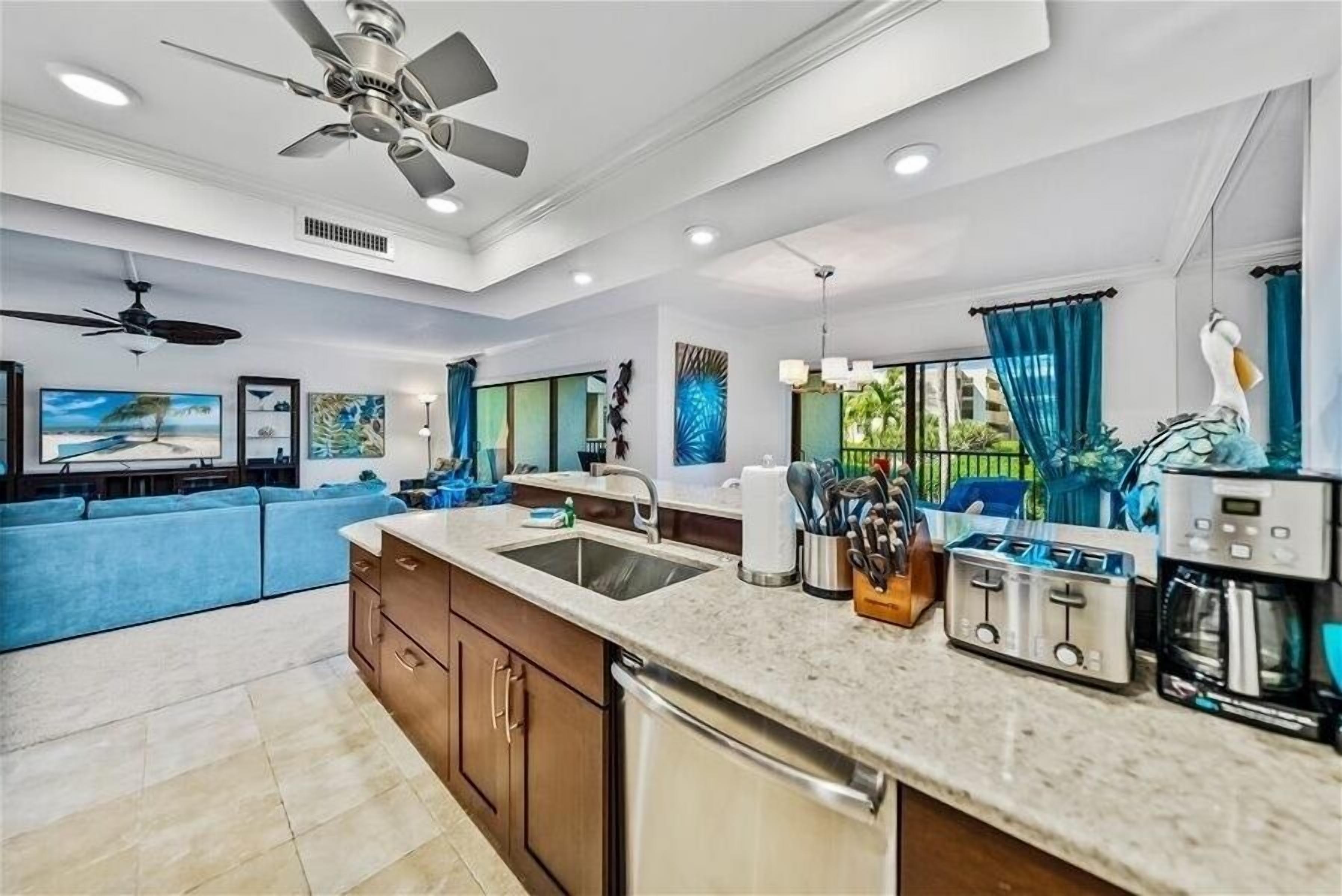 The master bedroom suite includes a King bed with a view of the coastal waters, flat screen smart TV, dresser, closet space and adjoining master bath with tub /shower. Remote controlled room darkening solar shades provide you with whichever light you prefer during your stay. The living room includes a comfortable queen sofa bed and an open floor plan allowing for all to sit comfortably around the dinner table and livingroom and enjoy the water views or watch the evening news on the flat screen smart TV. There's all new kitchen appliances, cabinetry and the kitchen is fully equipped including a kuerig. The condo also has a private washer/dryer.