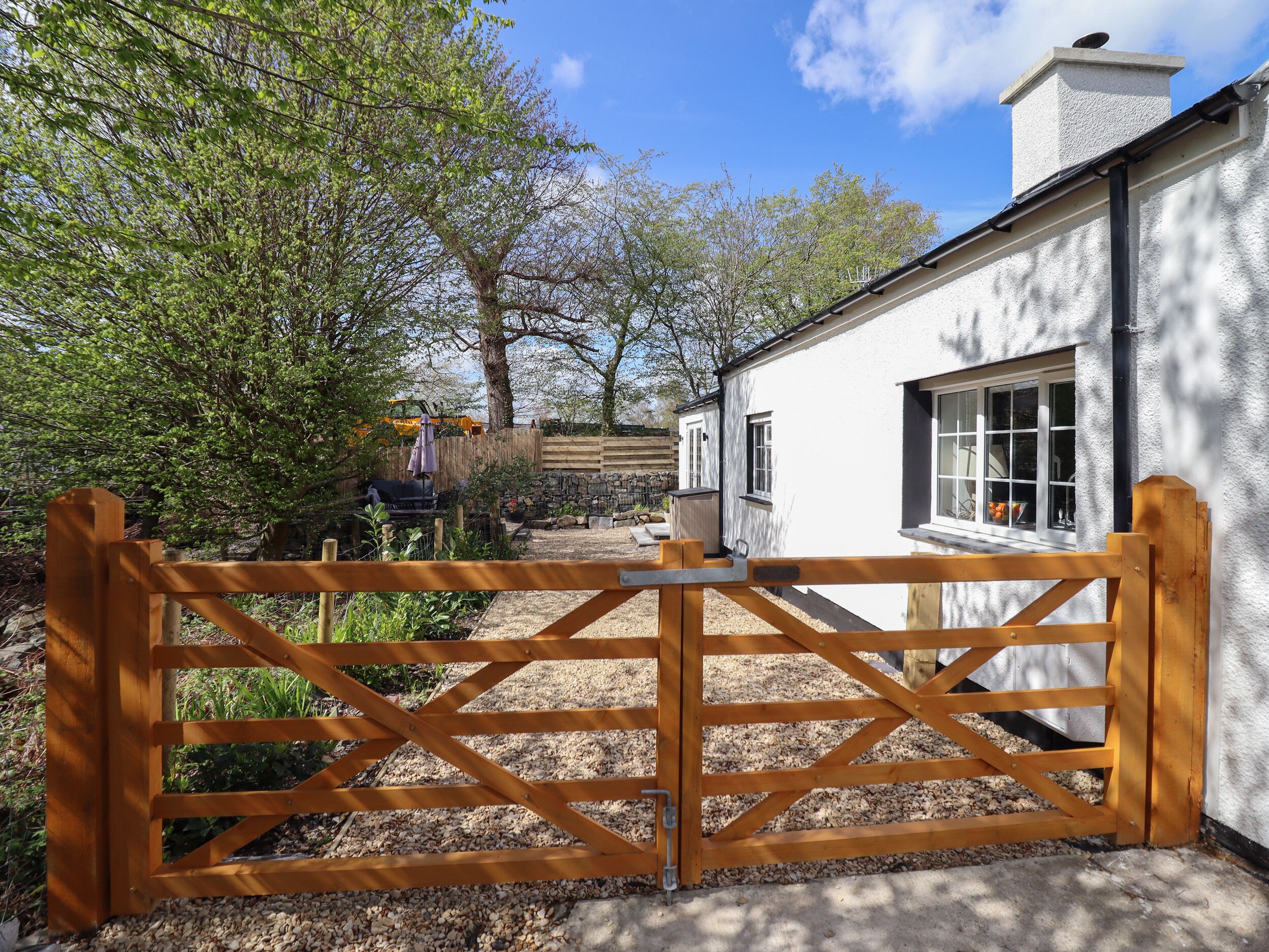- Outside: private decking area with hot tub and patio set. Large garden area to the front (not enclosed and close to a fast flowing stream). Mountain stream flows along the side of the garden, creating a beautiful, relaxing sound that complements the magnificent mountain scenery all around you.