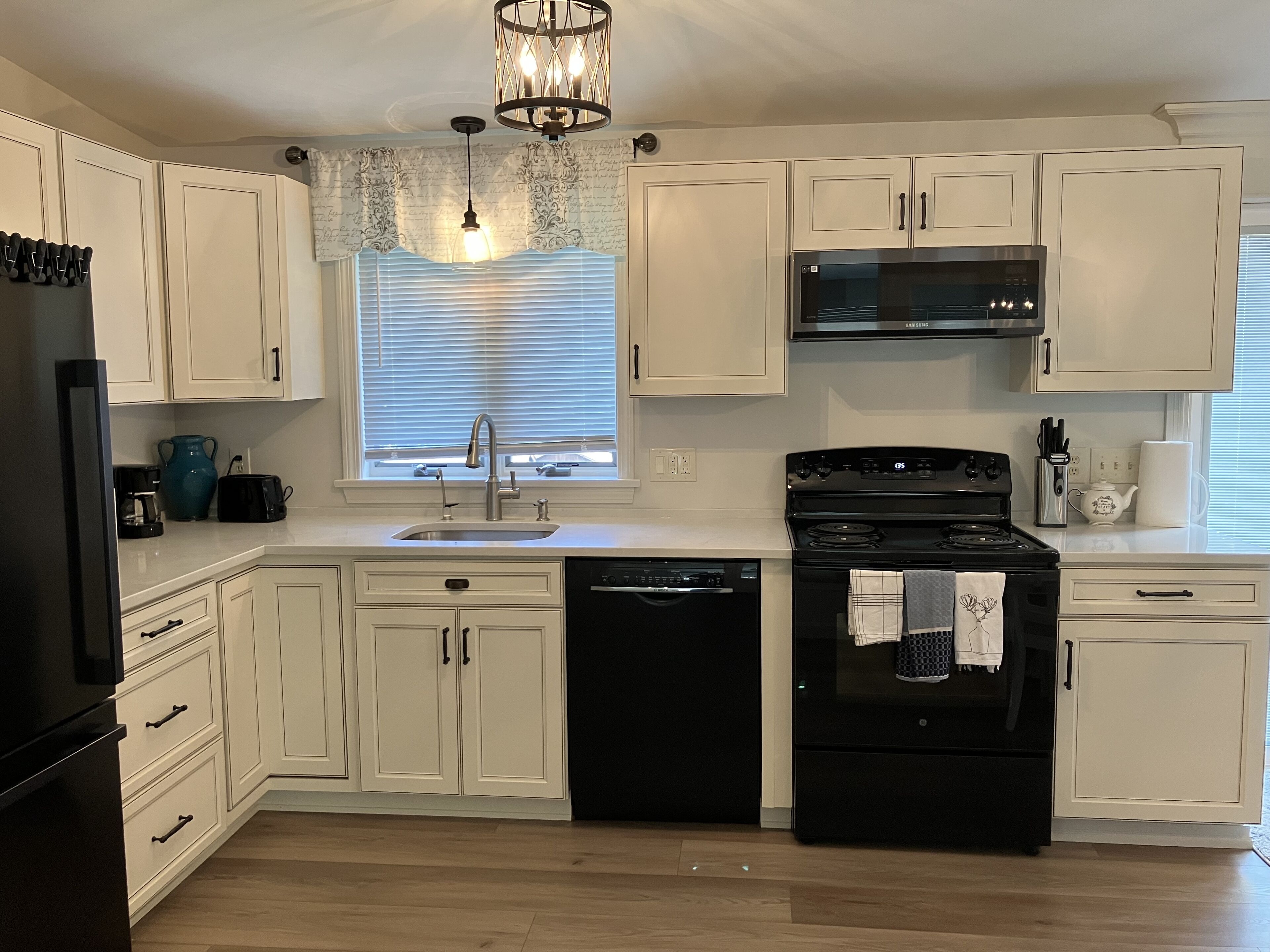 - Kitchen supplies (enough plates, bowls, utensils for 12 people, French press, kettle, knives, convection oven, powerful electric stove, new stainless steel samsung fridge, large microwave)