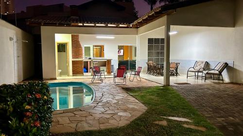 Casa espaçosa, mesa de sinuca e piscina aquecida! offers accommodations in Maringá, 4.2 miles from Maringa's Cathedral and 4.9 miles from Parque do Ingá. This property offers a private pool, free Wifi, and free private parking. The air-conditioned villa consists of 3 bedrooms, 2 living rooms, a fully equipped kitchen with a microwave and a kettle, and 3 bathrooms with a shower and a hair dryer. A flat-screen TV is offered. The property has an outdoor dining area. You can play billiards at the villa. Guests can relax in the garden at the property. Maringa Regional Airport is 6.8 miles from the property.